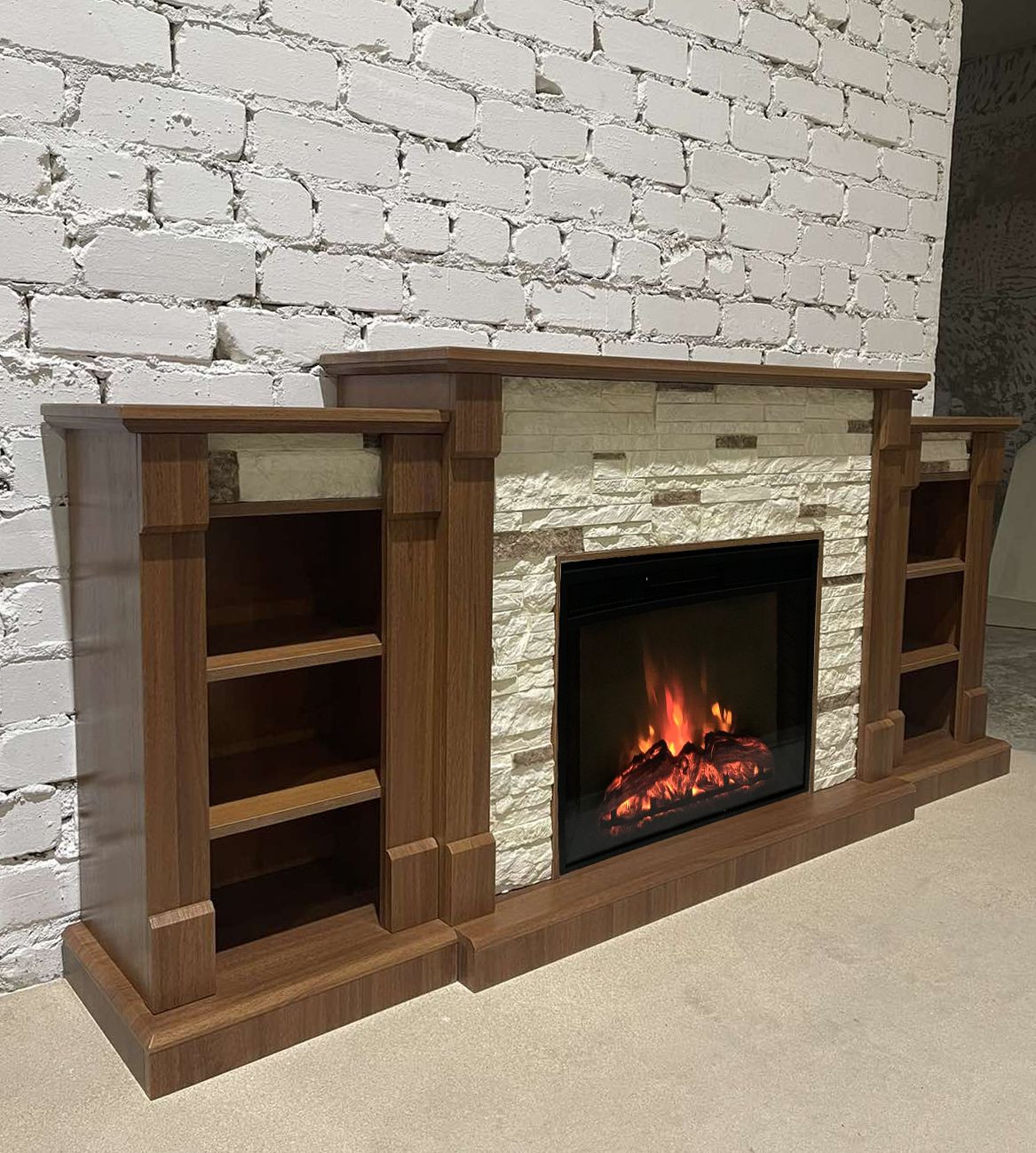 Электрокамин Моника LUX NT M1 с очагом Sparta 25.5 изготовлен из МДФ и облицован искусственным камнем. На ваш выбор 6 цветов искусственного камня. Портал дополняют тумбы с тремя секциями полок по обе стороны от топки, которые обеспечат вам пространство для хранения всех ваших любимых книг, газет и домашних аксессуаров. Уникальностью этого портала является компактность и широкий модельный ряд исполнения под различные очаги и размеры. Не смотря на его габариты в собранном состоянии, в упаковке он может быть перевезен в обычном легковом автомобиле. Поставляется в разобранном виде, в комплекте идет подробная инструкция по сборке и установке.