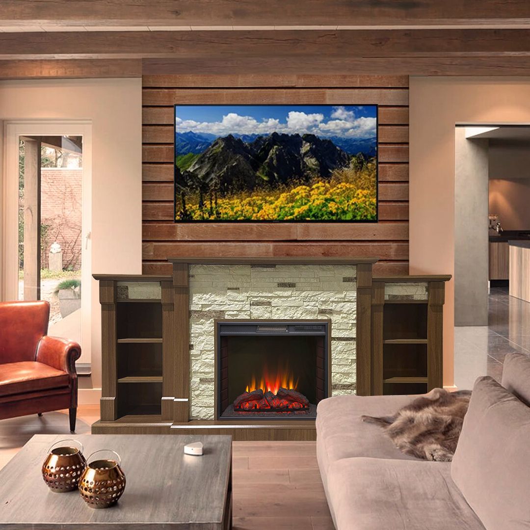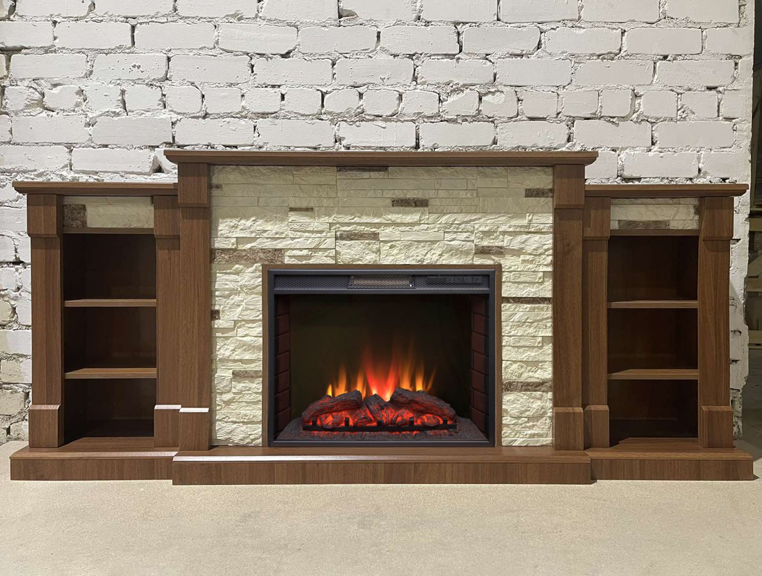 Портал укомплектован широким электроочагом Sparta 25.5 LED с великолепным разноцветным пламенем (3 цвета пламени), пламя в очаге смотрится выразительно и эффектно, а муляж дров и кирпичная кладка создают полное сходство с натуральным очагом. Эффект пламени притягивает к себе внимание с первых секунд. В очаге реализован один из самых совершенных способов визуализации пламени 2D на сегодняшний день. Визуальный эффект горящего огня создается с помощью проекционной LED-технологии.