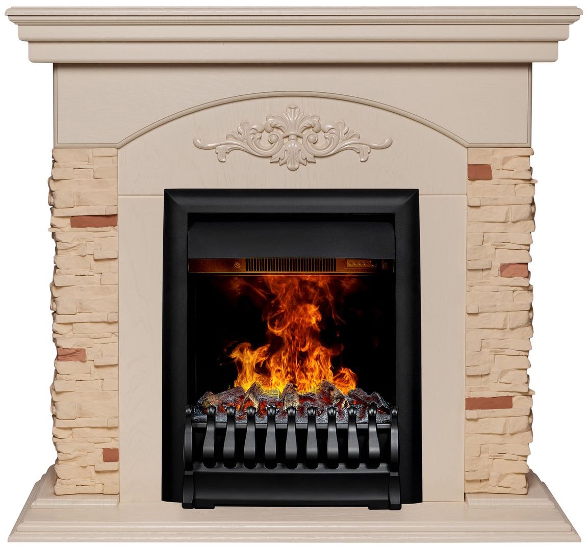 В комплекте используется классический узкий электроочаг 3D Oregan, который оснащен современным эффектом пламени 3D нового поколения. Абсолютно реалистичная имитация пламени, которая выглядит максимально достоверно за счёт эффекта дыма. Эффект пламени притягивает к себе внимание с первых секунд. В очаге реализован один из самых совершенных способов имитации пламени 3D на сегодняшний день. Электроочаг оборудован защитой включения без воды. Присутствует звуковой эффект горения пламени и потрескивания дров. Комплектуется пультом дистанционного управления, с помощью которого регулируется высота и яркость пламени.