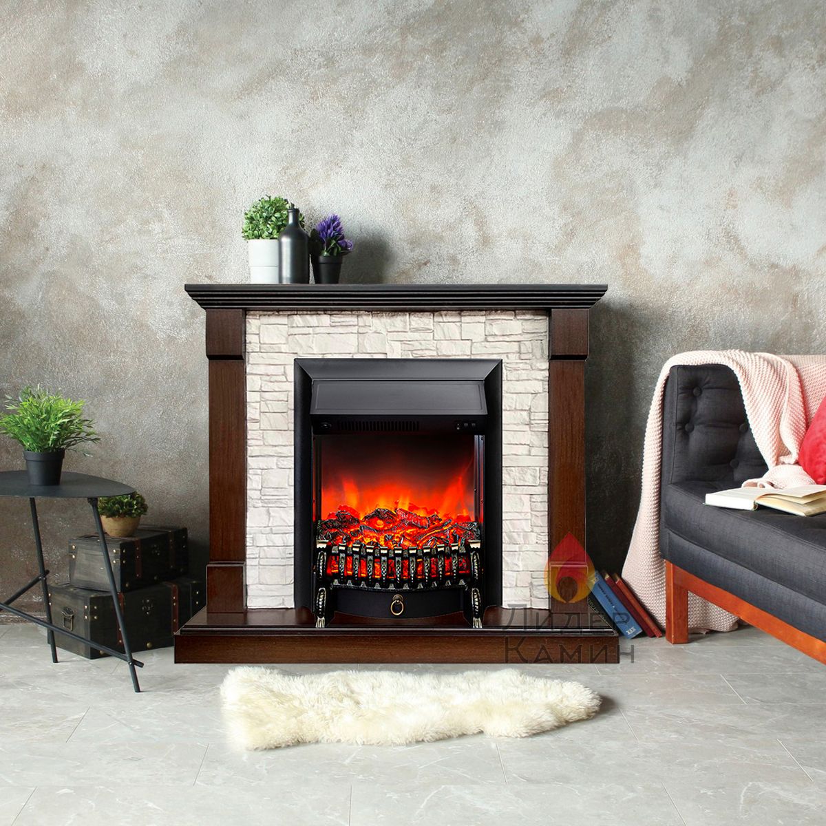 Каминокомплект с такой облицовкой будет прекрасно смотреться как в городском интерьере, так и в загородном доме. Благодаря своей простоте и отсутствию насыщенного декора электрокамин впишется практически в любой интерьер. Этот электрокамин станет точкой притяжения вашего интерьера.