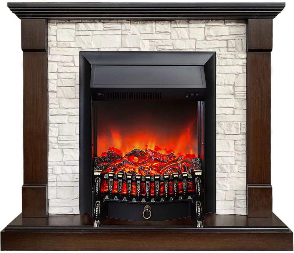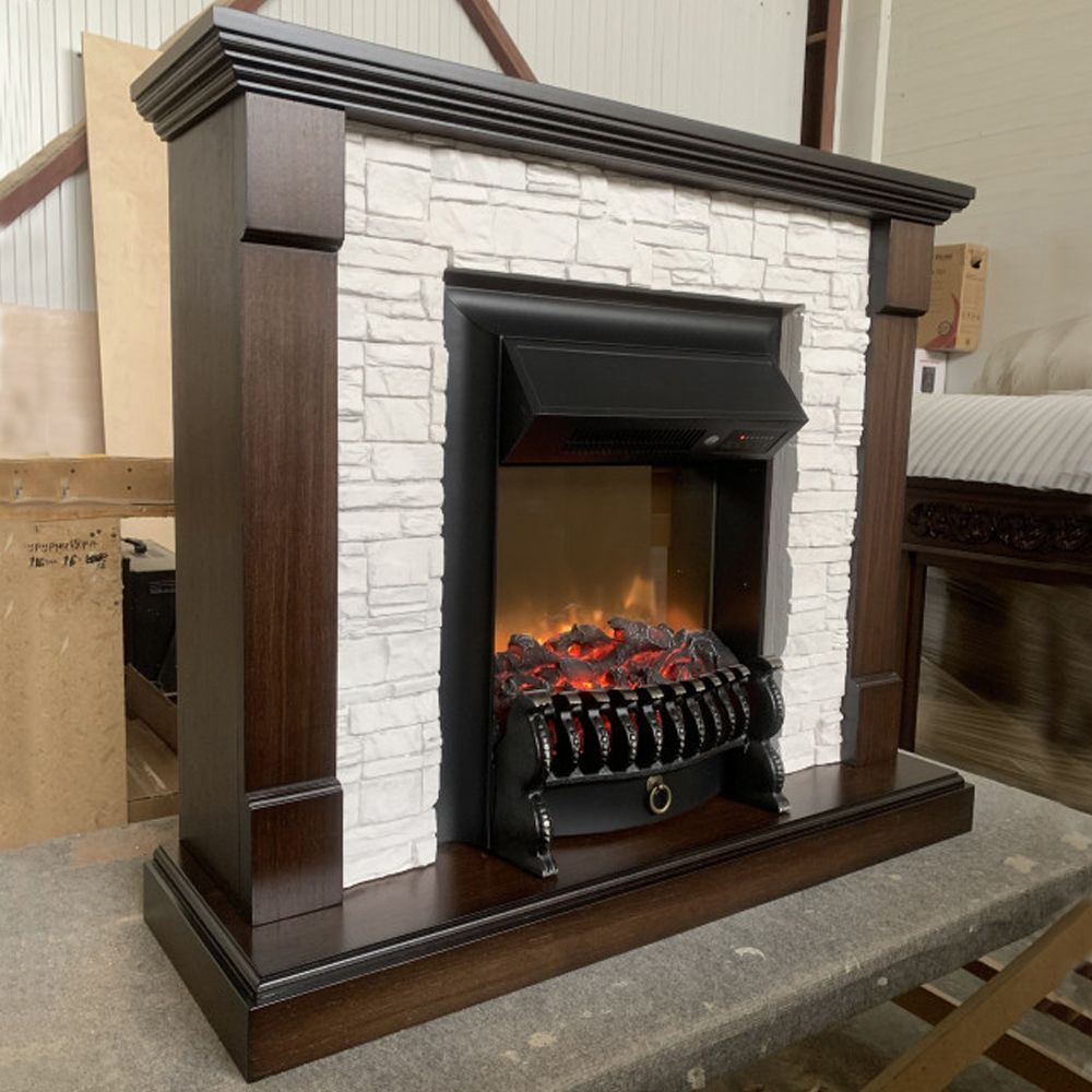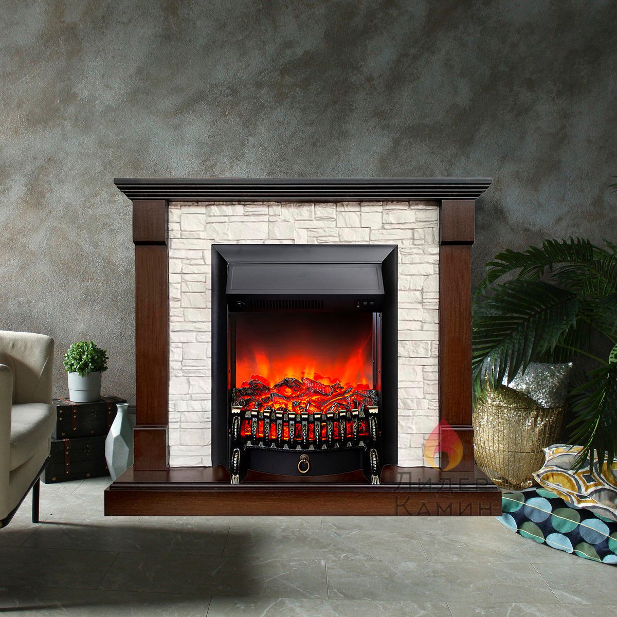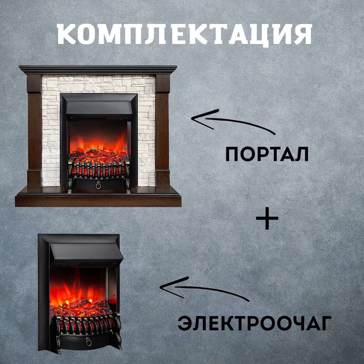 Портал электрокамина укомплектован классическим электроочагом Fobos. В очаге визуальный эффект горящего огня создается с помощью проекционной LED-технологии. Присутствует звуковой эффект горения пламени и потрескивания дров.