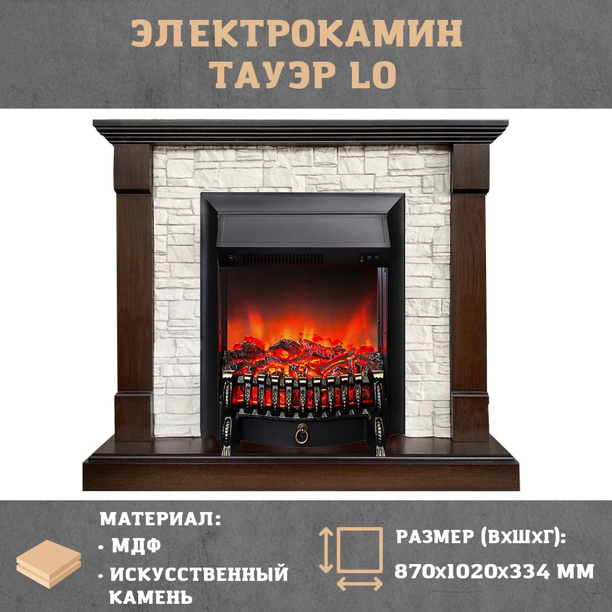 Электрокамин Тауэр LO камень белый с очагом Fobos