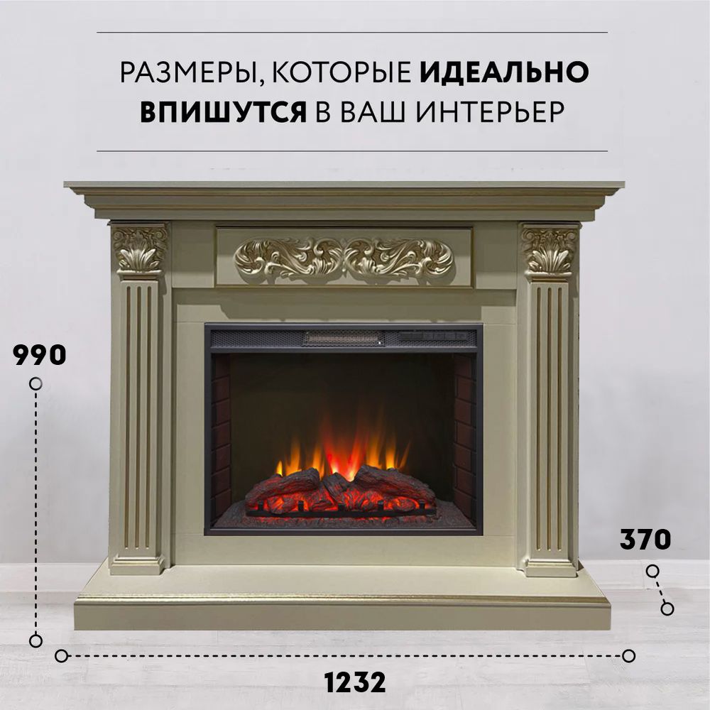 Портал укомплектован широким электроочагом Sparta 25.5 LED с великолепным разноцветным пламенем (3 цвета пламени), пламя в очаге смотрится выразительно и эффектно, а муляж дров и кирпичная кладка создают полное сходство с натуральным очагом. Эффект пламени притягивает к себе внимание с первых секунд. В очаге реализован один из самых совершенных способов визуализации пламени 2D на сегодняшний день. Визуальный эффект горящего огня создается с помощью проекционной LED-технологии.
