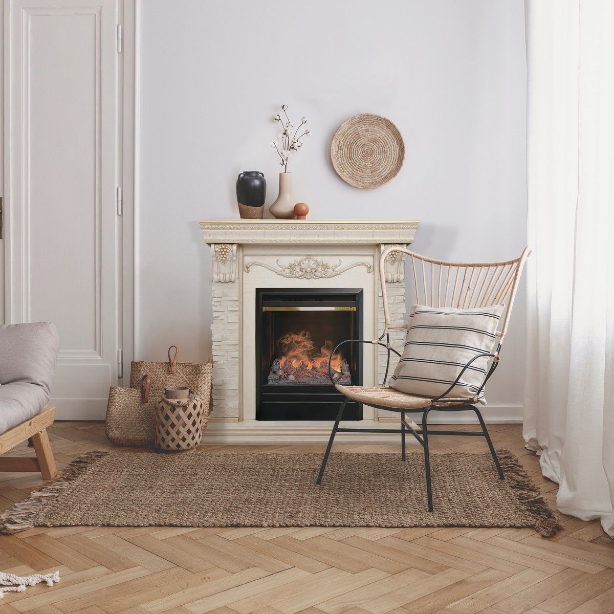 Укомплектован электроочагом 3D Olympic с технологией имитации пламени 3D, который имеет на 100% достоверный и реалистичный яркий эффект пламени. Настраиваемая высота пламени. В декоративном режиме электрический очаг потребляет всего 150 Вт в час. В дополнение к декоративному режиму имеется возможность работы в режиме обогрева мощностью 750 Вт или 1500 Вт, поэтому в холодные дни электрокамин можно использовать как дополнительный источник тепла. Предусмотрена функция защиты от перегрева. Электроочаг 3D Olympic управляется дистанционно с пульта. Также управление продублировано на панели очага. Электрический камин обеспечивает дополнительное увлажнение воздуха!