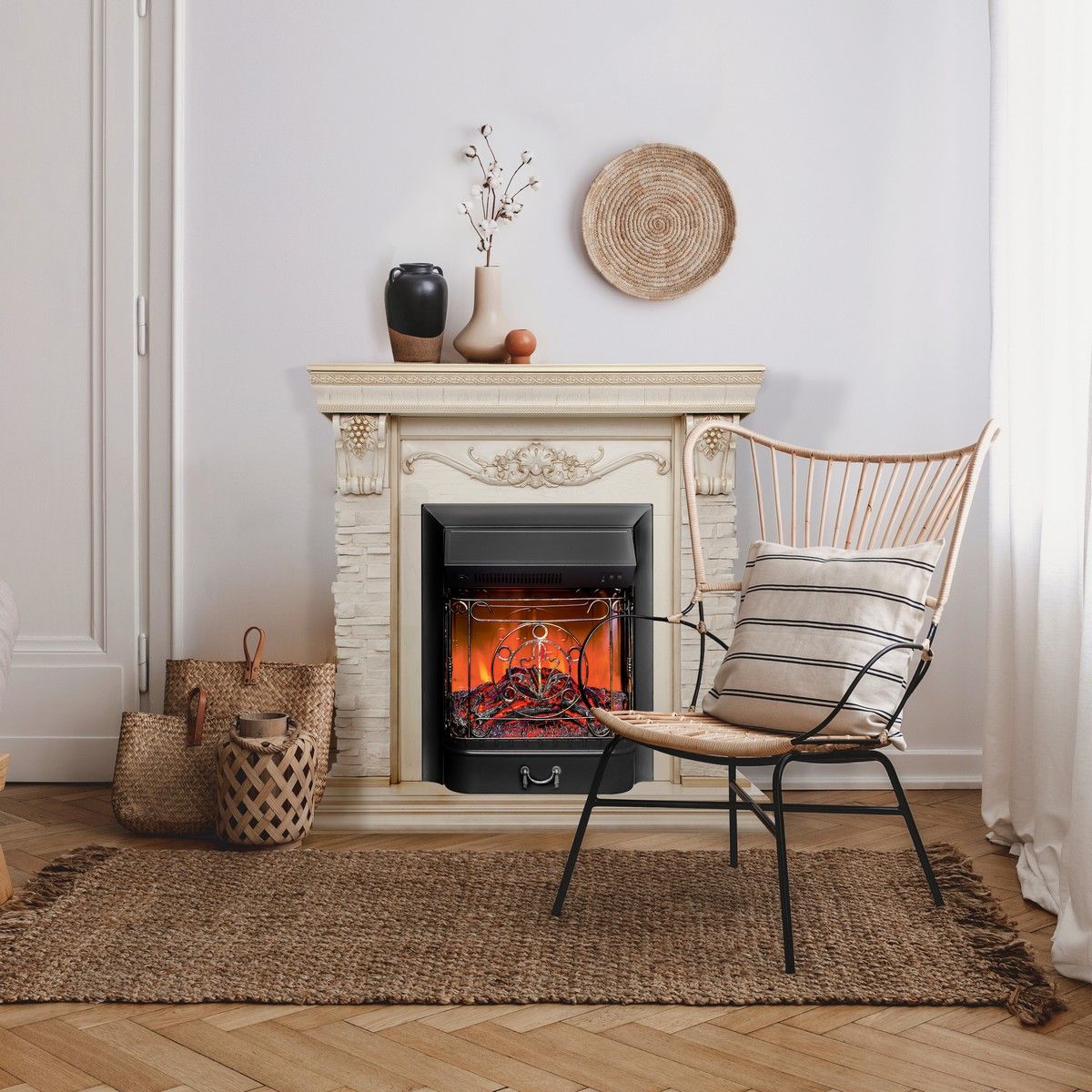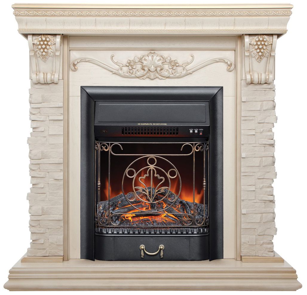 Портал укомплектован классическим электроочагом Majestic. В очаге визуальный эффект горящего огня создается с помощью проекционной LED-технологии. Присутствует звуковой эффект горения пламени и потрескивания дров. Очаг может работать как в режиме обогрева, так и в декоративном режиме без обогрева. В режиме обогрева в очаге предусмотрено 2 уровня регулировки обогрева, возможно переключение мощности обогрева 750-1500 Вт, поэтому в холодные дни данный электрокамин можно использовать как дополнительный источник тепла. Предусмотрена функция защиты от перегрева.