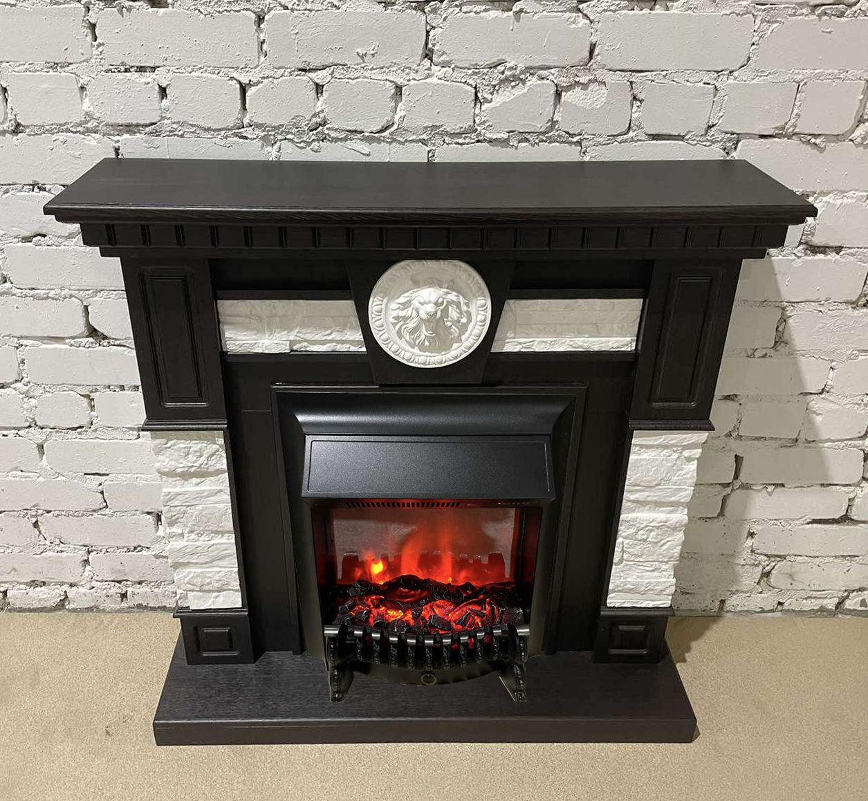 Портал укомплектован классическим электроочагом Fobos. В очаге визуальный эффект горящего огня создается с помощью проекционной LED-технологии. Присутствует звуковой эффект горения пламени и потрескивания дров. Очаг может работать как в режиме обогрева, так и в декоративном режиме без обогрева. В режиме обогрева в очаге предусмотрено 2 уровня регулировки обогрева, возможно переключение мощности обогрева 750-1500 Вт, поэтому в холодные дни данный электрокамин можно использовать как дополнительный источник тепла. Предусмотрена функция защиты от перегрева.