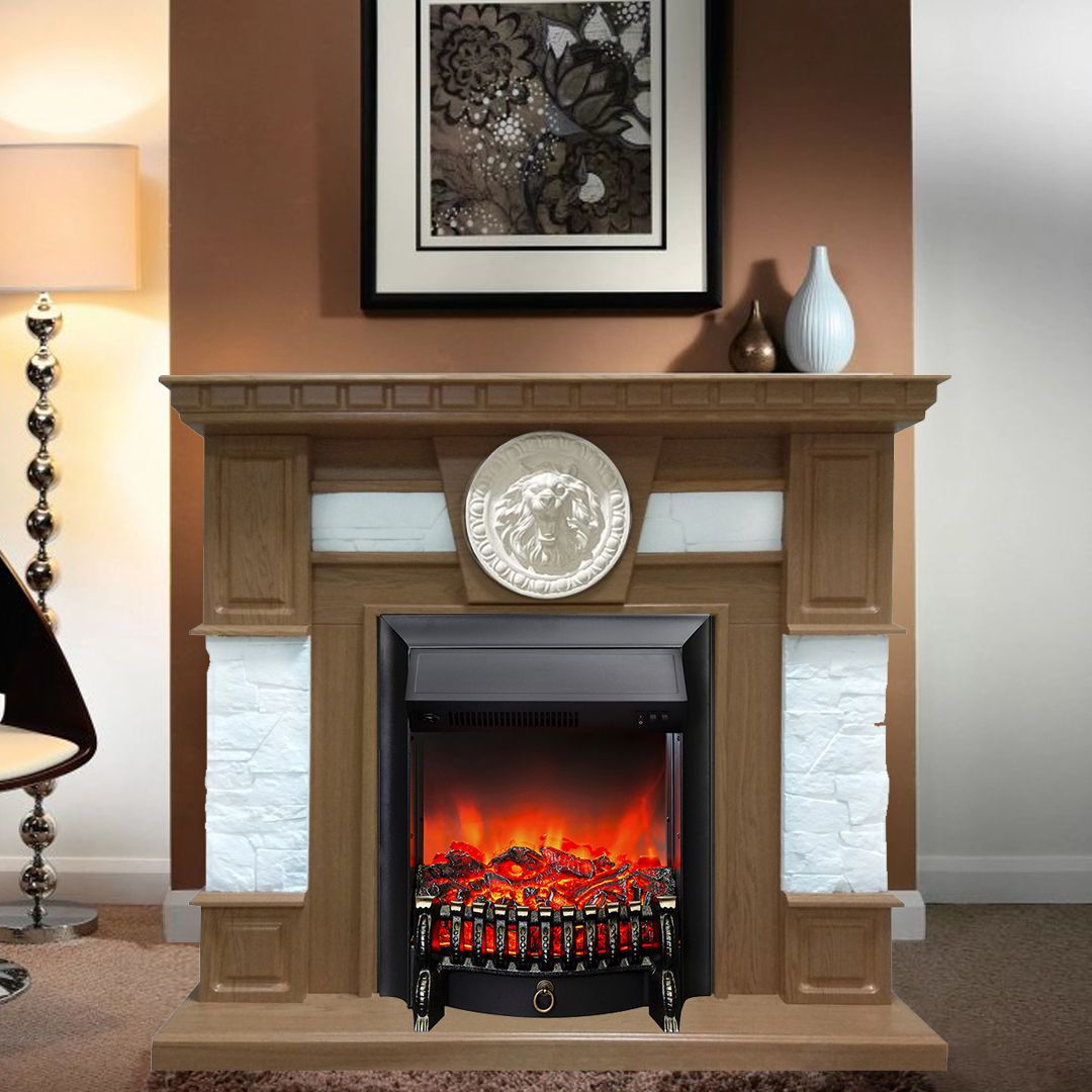 Портал укомплектован классическим электроочагом Fobos. В очаге визуальный эффект горящего огня создается с помощью проекционной LED-технологии. Присутствует звуковой эффект горения пламени и потрескивания дров. Очаг может работать как в режиме обогрева, так и в декоративном режиме без обогрева. В режиме обогрева в очаге предусмотрено 2 уровня регулировки обогрева, возможно переключение мощности обогрева 750-1500 Вт, поэтому в холодные дни данный электрокамин можно использовать как дополнительный источник тепла. Предусмотрена функция защиты от перегрева.