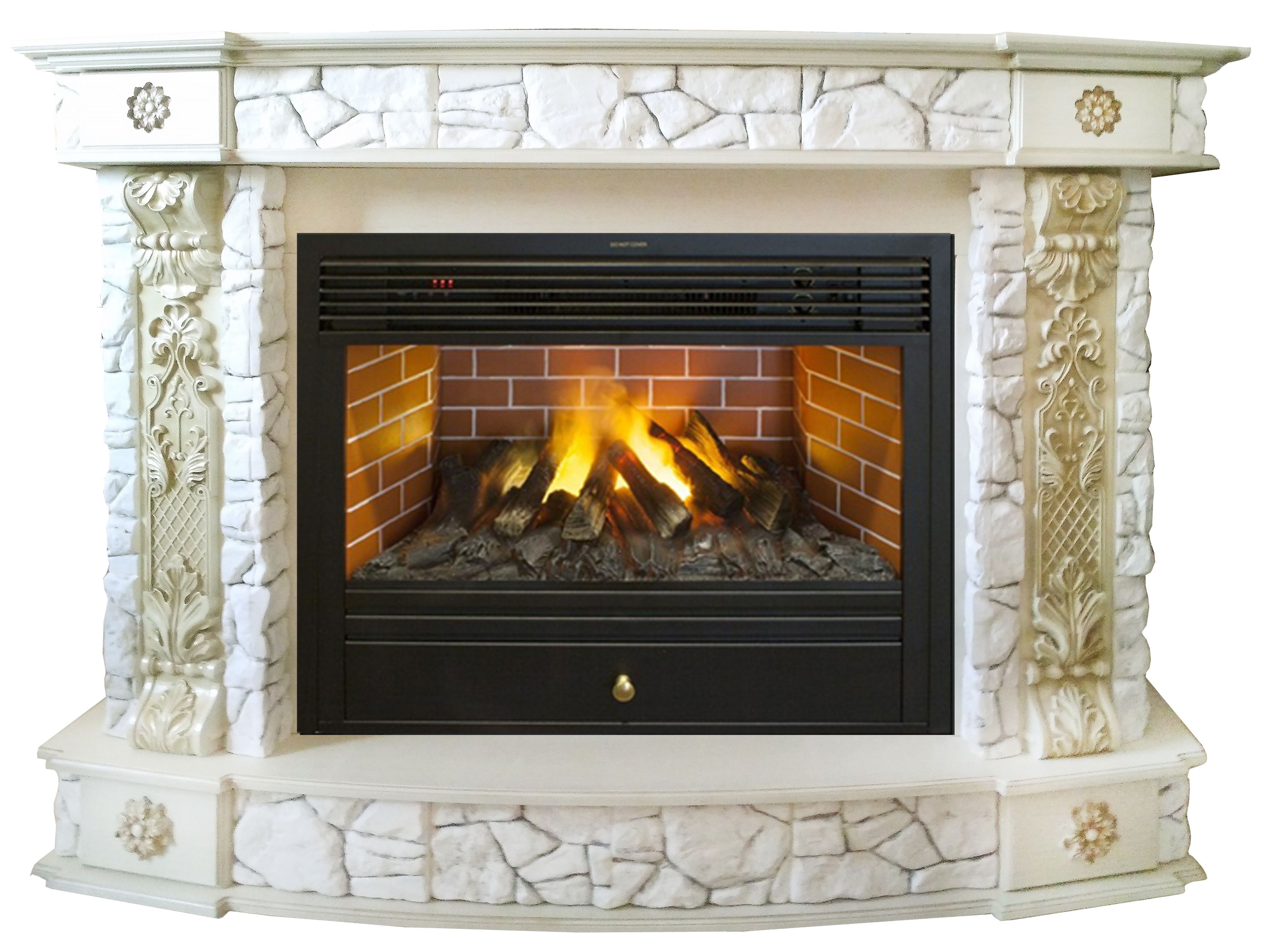 В комплекте используется широкий 3D электроочаг 3D Novara 26, который оснащен современной технологией имитации 3D пламени. Абсолютно реалистичная имитация пламени, которая выглядит максимально достоверно за счёт эффекта дыма. Электроочаг оборудован защитой включения без воды. Присутствует звуковой эффект горения пламени и потрескивания дров.