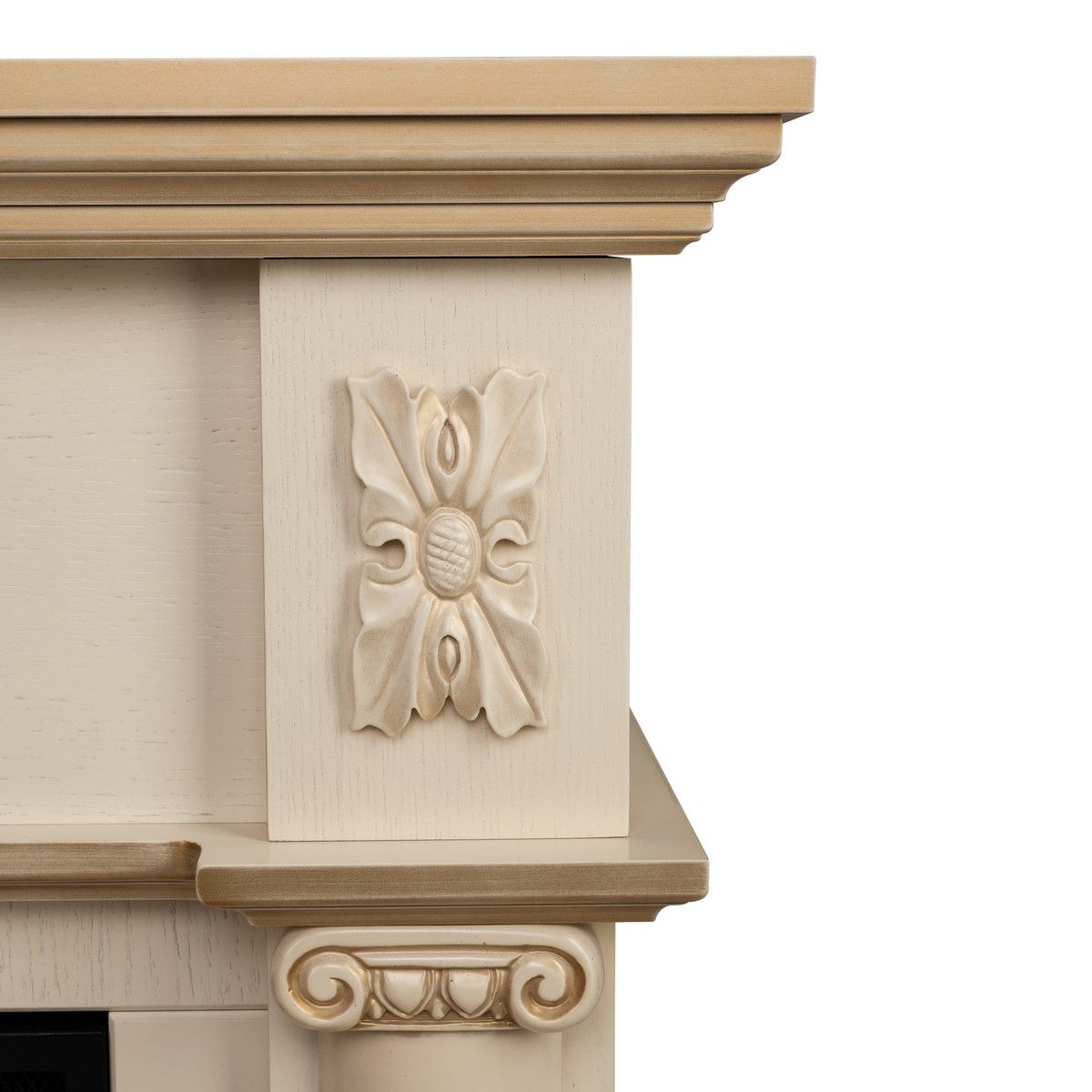 Электрокамин Silvia WT с очагом 3D Cassette 630 - изготовлен из МДФ и шпона в цвете дуб белый с золотой патиной. Классическое исполнение обрамления электрокамина Silvia с неброскими декоративными элементами в благородном насыщенном цвете. Прекрасно уживается с предметами интерьера. Нестареющая классика в сочетании с функциональностью и удобством.