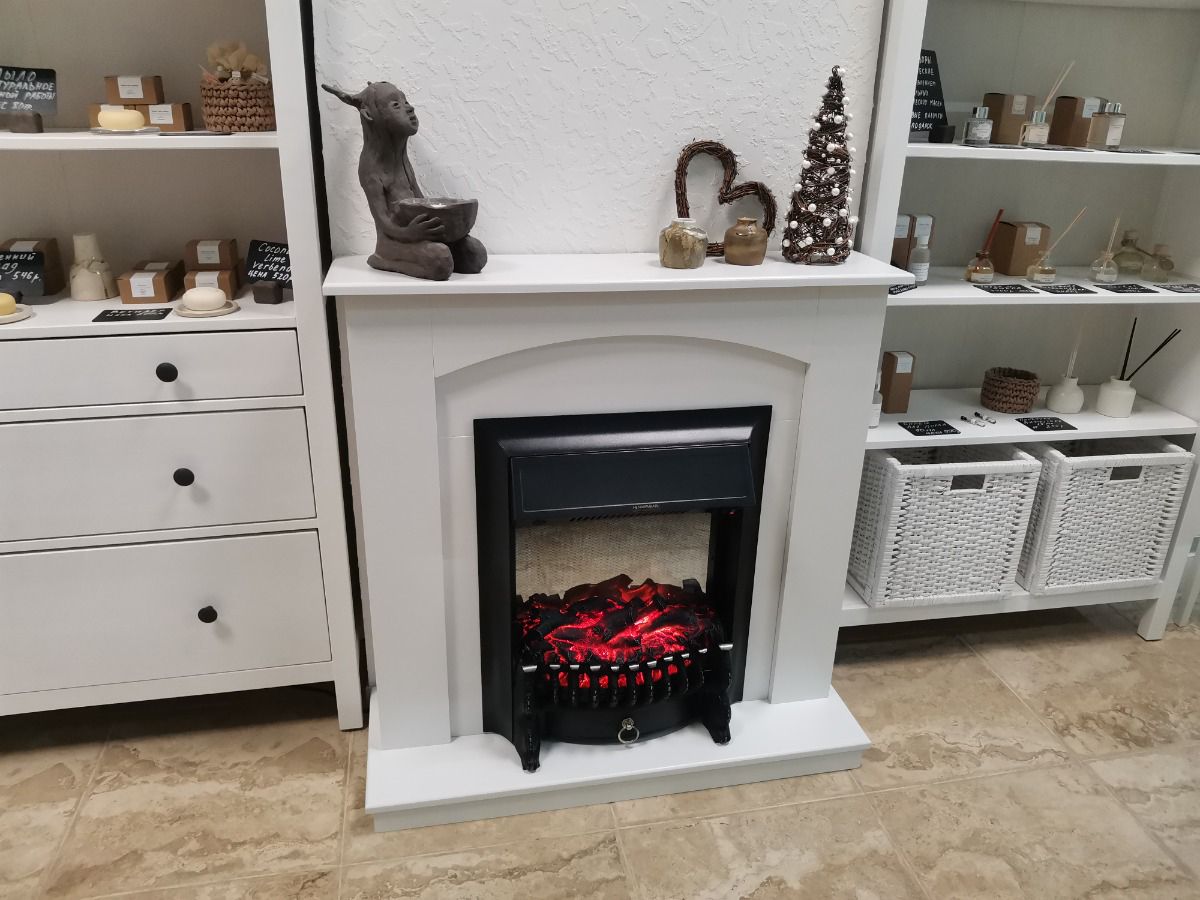 Портал укомплектован классическим электроочагом Fobos. В очаге визуальный эффект горящего огня создается с помощью проекционной LED-технологии. Присутствует звуковой эффект горения пламени и потрескивания дров. Очаг может работать как в режиме обогрева, так и в декоративном режиме без обогрева. В режиме обогрева в очаге предусмотрено 2 уровня регулировки обогрева, возможно переключение мощности обогрева 750-1500 Вт, поэтому в холодные дни данный электрокамин можно использовать как дополнительный источник тепла. Предусмотрена функция защиты от перегрева.
