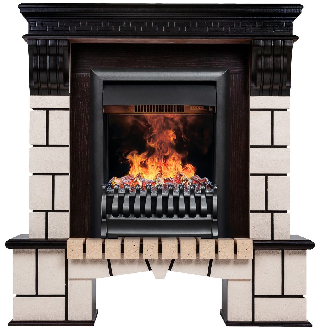 В комплекте используется классический узкий электроочаг 3D Oregan, который оснащен современным эффектом пламени 3D нового поколения. Абсолютно реалистичная имитация пламени, которая выглядит максимально достоверно за счёт эффекта дыма. Эффект пламени притягивает к себе внимание с первых секунд. В очаге реализован один из самых совершенных способов имитации пламени 3D на сегодняшний день. Электроочаг оборудован защитой включения без воды. Присутствует звуковой эффект горения пламени и потрескивания дров. Комплектуется пультом дистанционного управления, с помощью которого регулируется высота и яркость пламени.