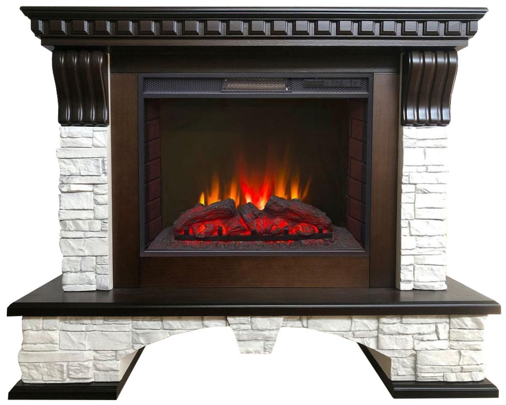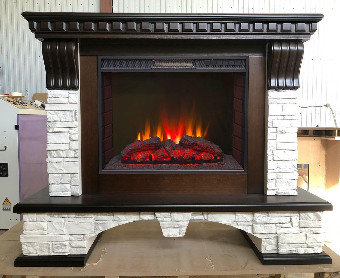 Портал укомплектован широким электроочагом Sparta 25.5 LED с великолепным разноцветным пламенем (3 цвета пламени), пламя в очаге смотрится выразительно и эффектно, а муляж дров и кирпичная кладка создают полное сходство с натуральным очагом. Эффект пламени притягивает к себе внимание с первых секунд. В очаге реализован один из самых совершенных способов визуализации пламени 2D на сегодняшний день. Визуальный эффект горящего огня создается с помощью проекционной LED-технологии.
