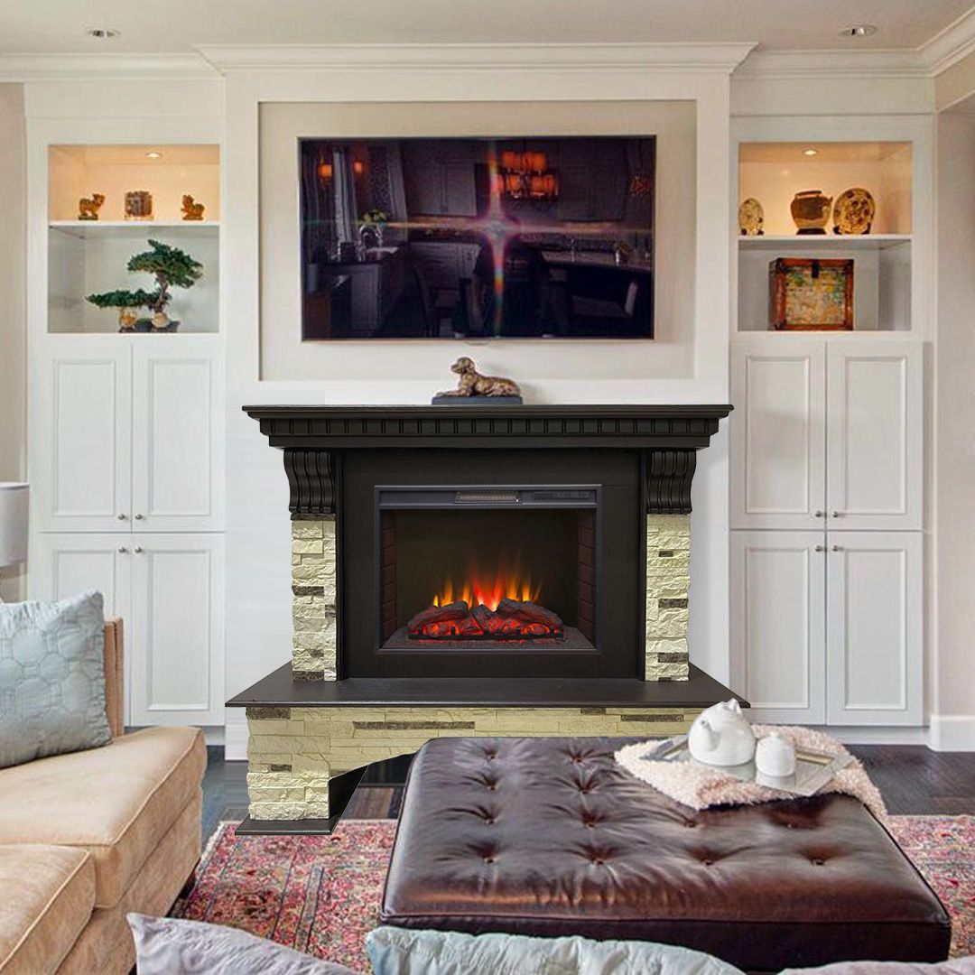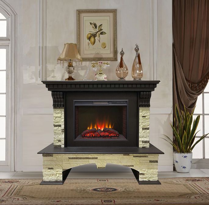 Портал укомплектован широким электроочагом Sparta 25.5 LED с великолепным разноцветным пламенем (3 цвета пламени), пламя в очаге смотрится выразительно и эффектно, а муляж дров и кирпичная кладка создают полное сходство с натуральным очагом. Эффект пламени притягивает к себе внимание с первых секунд. В очаге реализован один из самых совершенных способов визуализации пламени 2D на сегодняшний день. Визуальный эффект горящего огня создается с помощью проекционной LED-технологии.