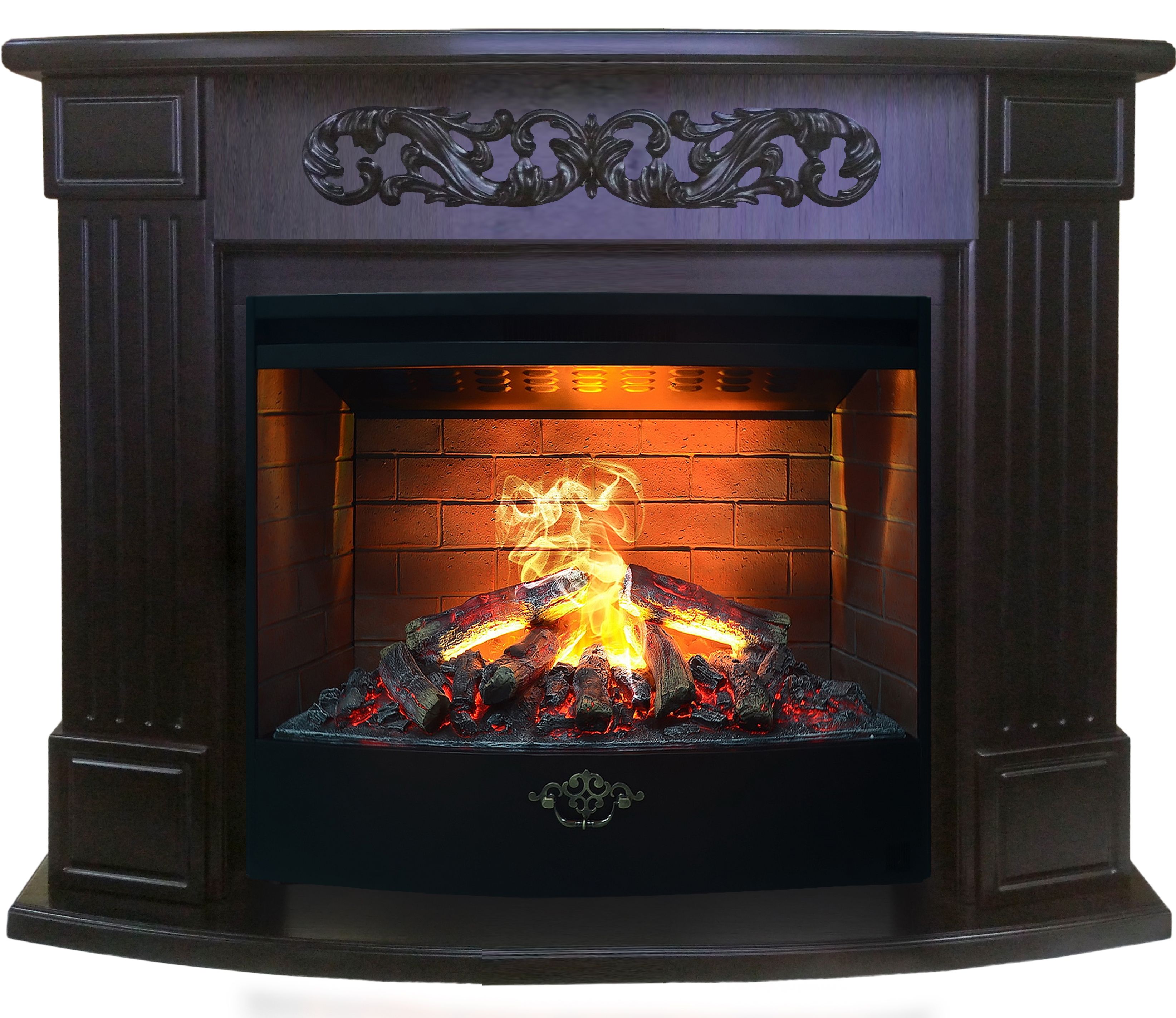 В комплекте используется сверхширокий 3D электроочаг 3D FireStar 33, который оснащен современным эффектом пламени 3D нового поколения. Абсолютно реалистичная имитация пламени, которая выглядит максимально достоверно за счёт эффекта дыма. Эффект пламени притягивает к себе внимание с первых секунд. В очаге реализован один из самых совершенных способов имитации пламени 3D на сегодняшний день. Электроочаг оборудован защитой включения без воды. Присутствует звуковой эффект горения пламени и потрескивания дров. Комплектуется пультом дистанционного управления, с помощью которого регулируется высота пламени.