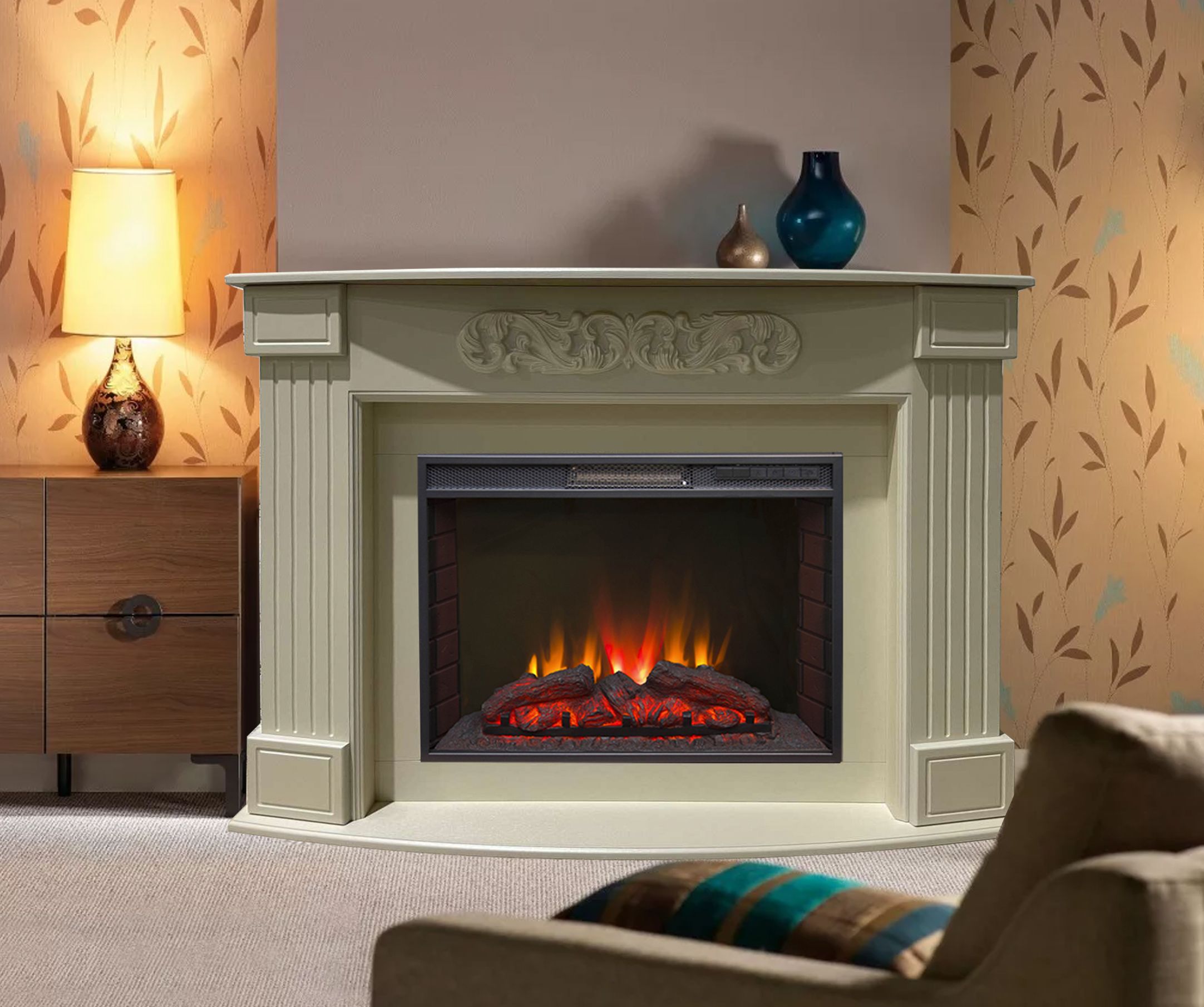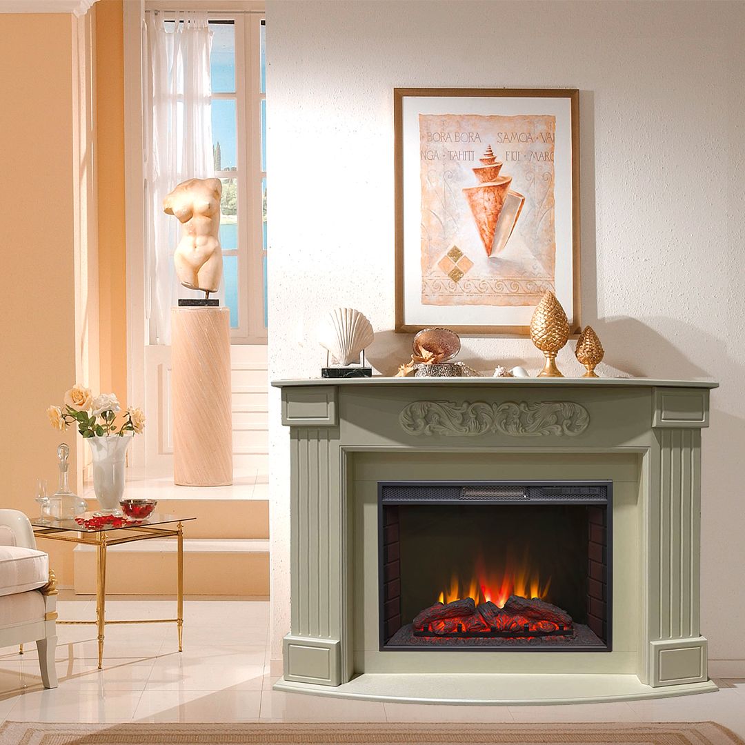 Портал укомплектован широким электроочагом Sparta 25.5 LED с великолепным разноцветным пламенем (3 цвета пламени), пламя в очаге смотрится выразительно и эффектно, а муляж дров и кирпичная кладка создают полное сходство с натуральным очагом. Эффект пламени притягивает к себе внимание с первых секунд. В очаге реализован один из самых совершенных способов визуализации пламени 2D на сегодняшний день. Визуальный эффект горящего огня создается с помощью проекционной LED-технологии.