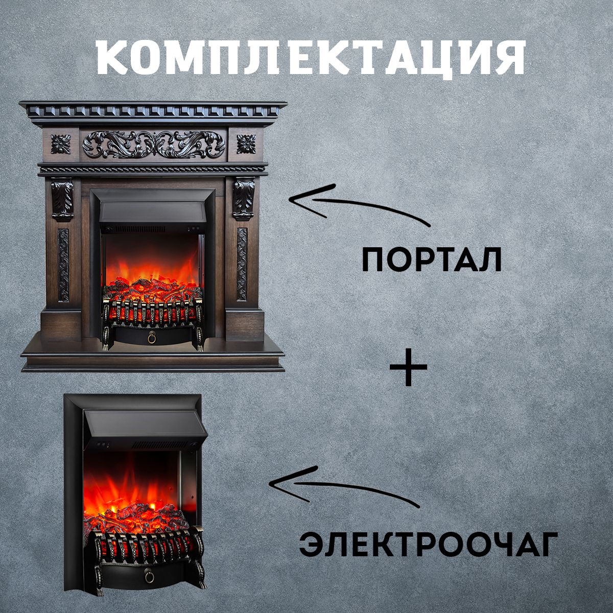 Портал декоративного камина Verona укомплектован классическим электроочагом Fobos. В очаге визуальный эффект горящего огня создается с помощью проекционной LED-технологии. Присутствует звуковой эффект горения пламени и потрескивания дров.