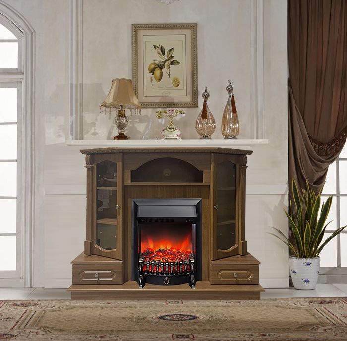 Портал укомплектован классическим электроочагом Fobos. В очаге визуальный эффект горящего огня создается с помощью проекционной LED-технологии. Присутствует звуковой эффект горения пламени и потрескивания дров. Очаг может работать как в режиме обогрева, так и в декоративном режиме без обогрева. В режиме обогрева в очаге предусмотрено 2 уровня регулировки обогрева, возможно переключение мощности обогрева 750-1500 Вт, поэтому в холодные дни данный электрокамин можно использовать как дополнительный источник тепла. Предусмотрена функция защиты от перегрева.