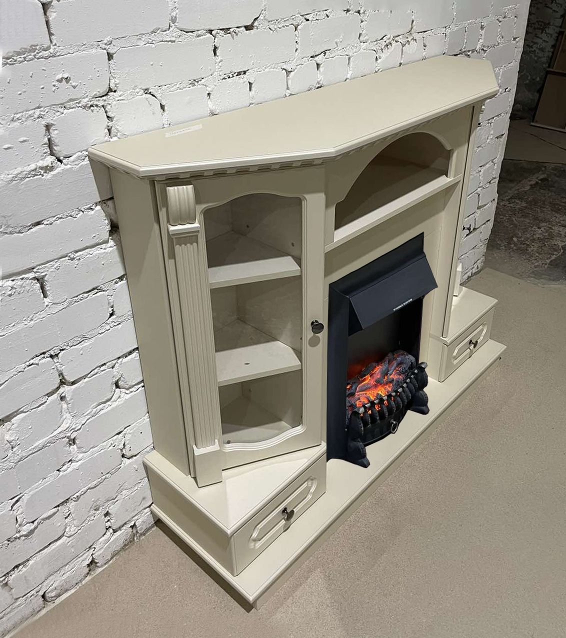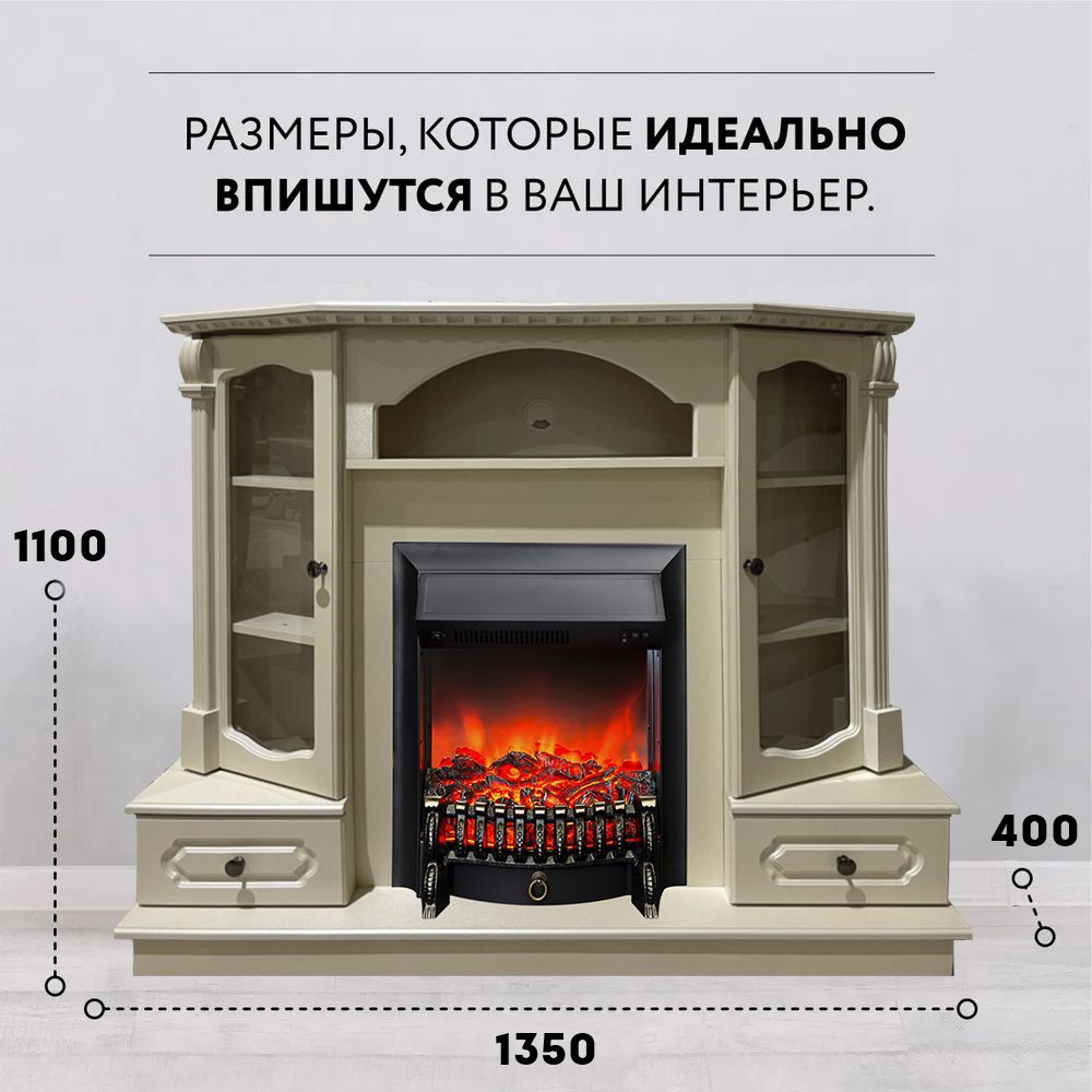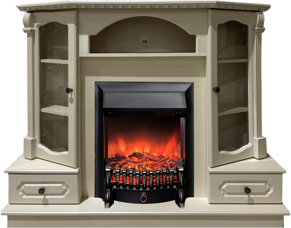 Электрокамин Вилс SL с очагом Fobos изготовлен из МДФ и ЛДСП в цвете слоновая кость. Много-функциональный дизайн, строгий ретростиль. Комплектация ящиками полного выдвижения по обе стороны портала. Открывающиеся рамочные фасады с прозрачным стеклом на петлях с доводчиком. Полки ЛДСП. Заглушка под провода. Инструкция по сборке.