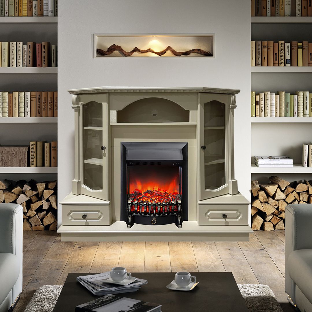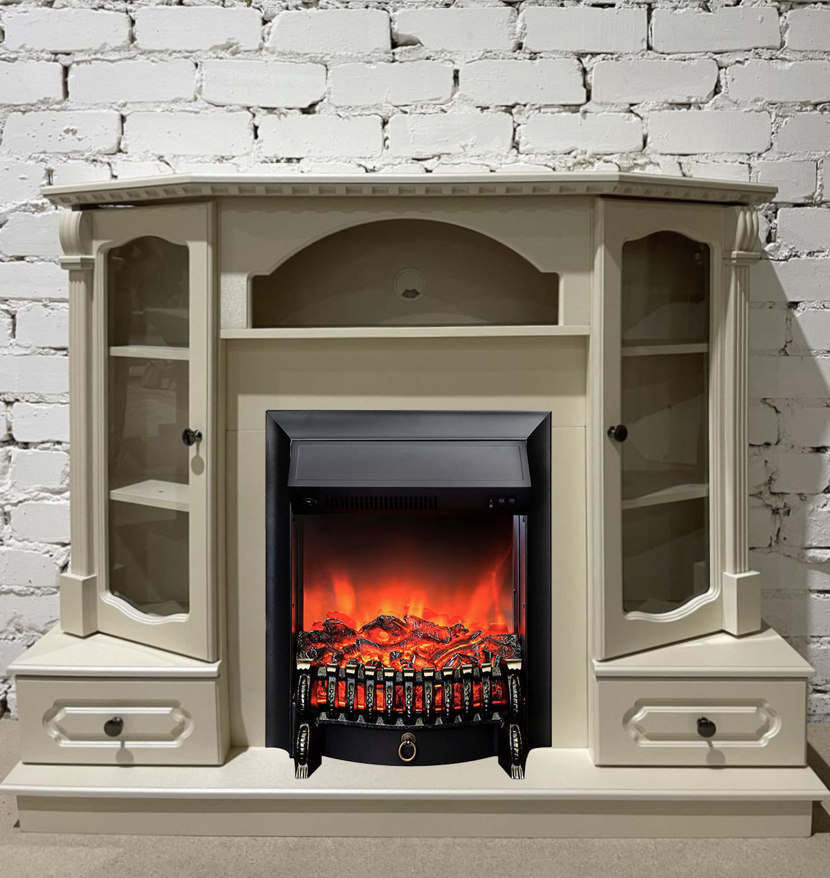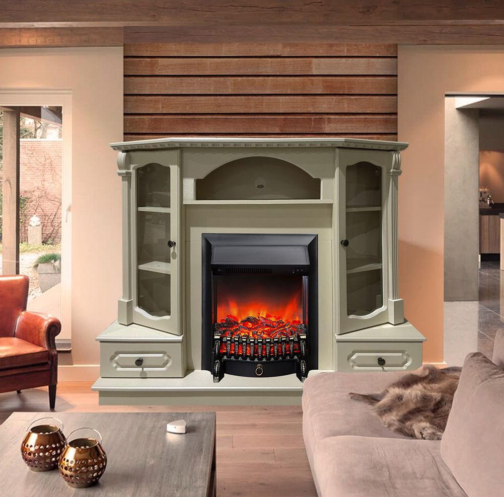 Портал электрического камина укомплектован классическим электроочагом Fobos. В очаге визуальный эффект горящего огня создается с помощью проекционной LED-технологии. Присутствует звуковой эффект горения пламени и потрескивания дров.