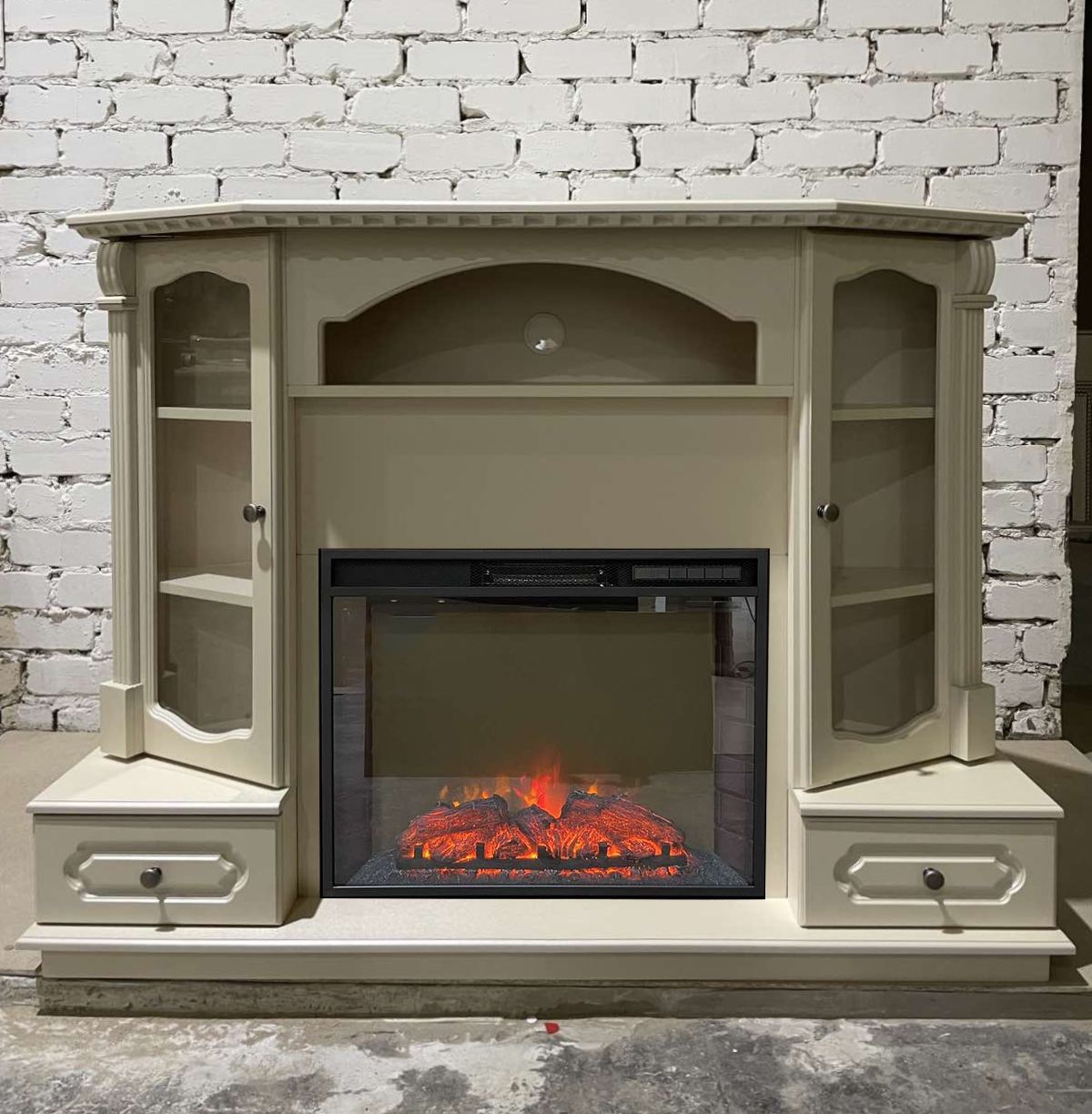 Портал укомплектован широким электроочагом Sparta 25.5 LED с великолепным разноцветным пламенем (3 цвета пламени), пламя в очаге смотрится выразительно и эффектно, а муляж дров и кирпичная кладка создают полное сходство с натуральным очагом. Эффект пламени притягивает к себе внимание с первых секунд. В очаге реализован один из самых совершенных способов визуализации пламени 2D на сегодняшний день. Визуальный эффект горящего огня создается с помощью проекционной LED-технологии.