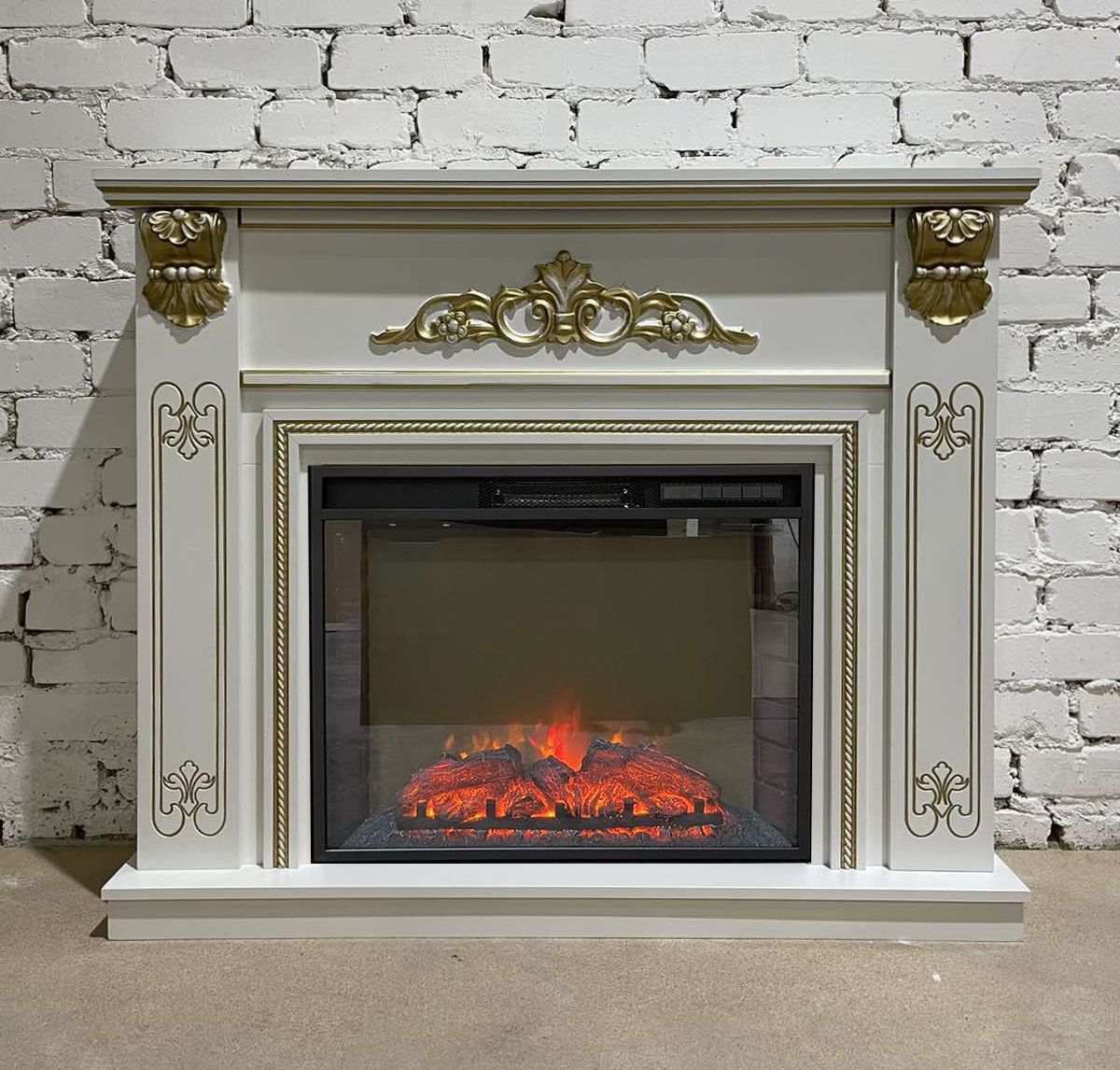Портал укомплектован широким электроочагом Sparta 25.5 LED с великолепным разноцветным пламенем (3 цвета пламени), пламя в очаге смотрится выразительно и эффектно, а муляж дров и кирпичная кладка создают полное сходство с натуральным очагом. Эффект пламени притягивает к себе внимание с первых секунд. В очаге реализован один из самых совершенных способов визуализации пламени 2D на сегодняшний день. Визуальный эффект горящего огня создается с помощью проекционной LED-технологии.