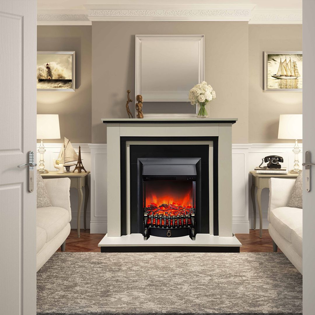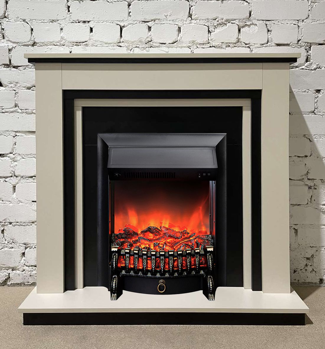 Портал укомплектован классическим электроочагом Fobos. В очаге визуальный эффект горящего огня создается с помощью проекционной LED-технологии. Присутствует звуковой эффект горения пламени и потрескивания дров. Очаг может работать как в режиме обогрева, так и в декоративном режиме без обогрева. В режиме обогрева в очаге предусмотрено 2 уровня регулировки обогрева, возможно переключение мощности обогрева 750-1500 Вт, поэтому в холодные дни данный электрокамин можно использовать как дополнительный источник тепла. Предусмотрена функция защиты от перегрева.