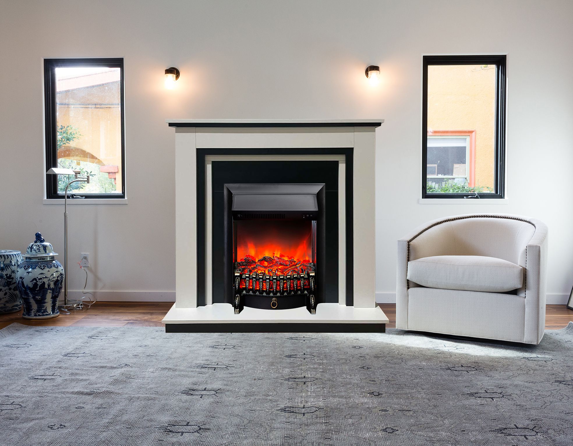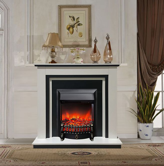 Портал укомплектован классическим электроочагом Fobos. В очаге визуальный эффект горящего огня создается с помощью проекционной LED-технологии. Присутствует звуковой эффект горения пламени и потрескивания дров. Очаг может работать как в режиме обогрева, так и в декоративном режиме без обогрева. В режиме обогрева в очаге предусмотрено 2 уровня регулировки обогрева, возможно переключение мощности обогрева 750-1500 Вт, поэтому в холодные дни данный электрокамин можно использовать как дополнительный источник тепла. Предусмотрена функция защиты от перегрева.