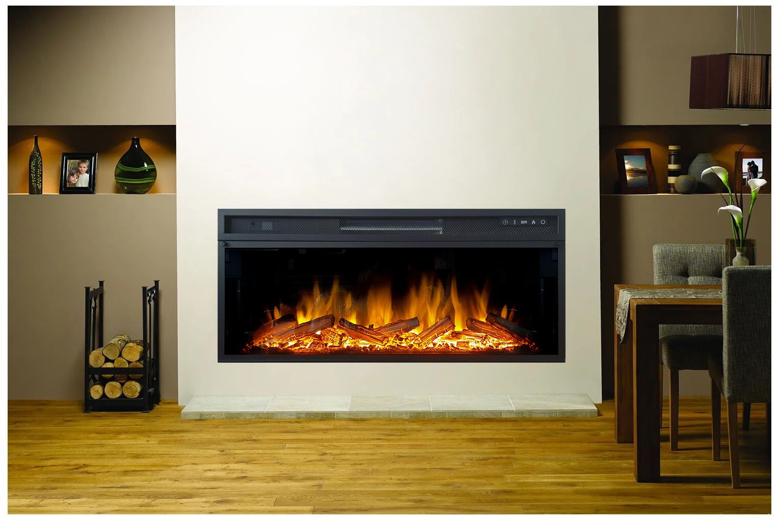 - Возможность встраивания в стену, каминный портал