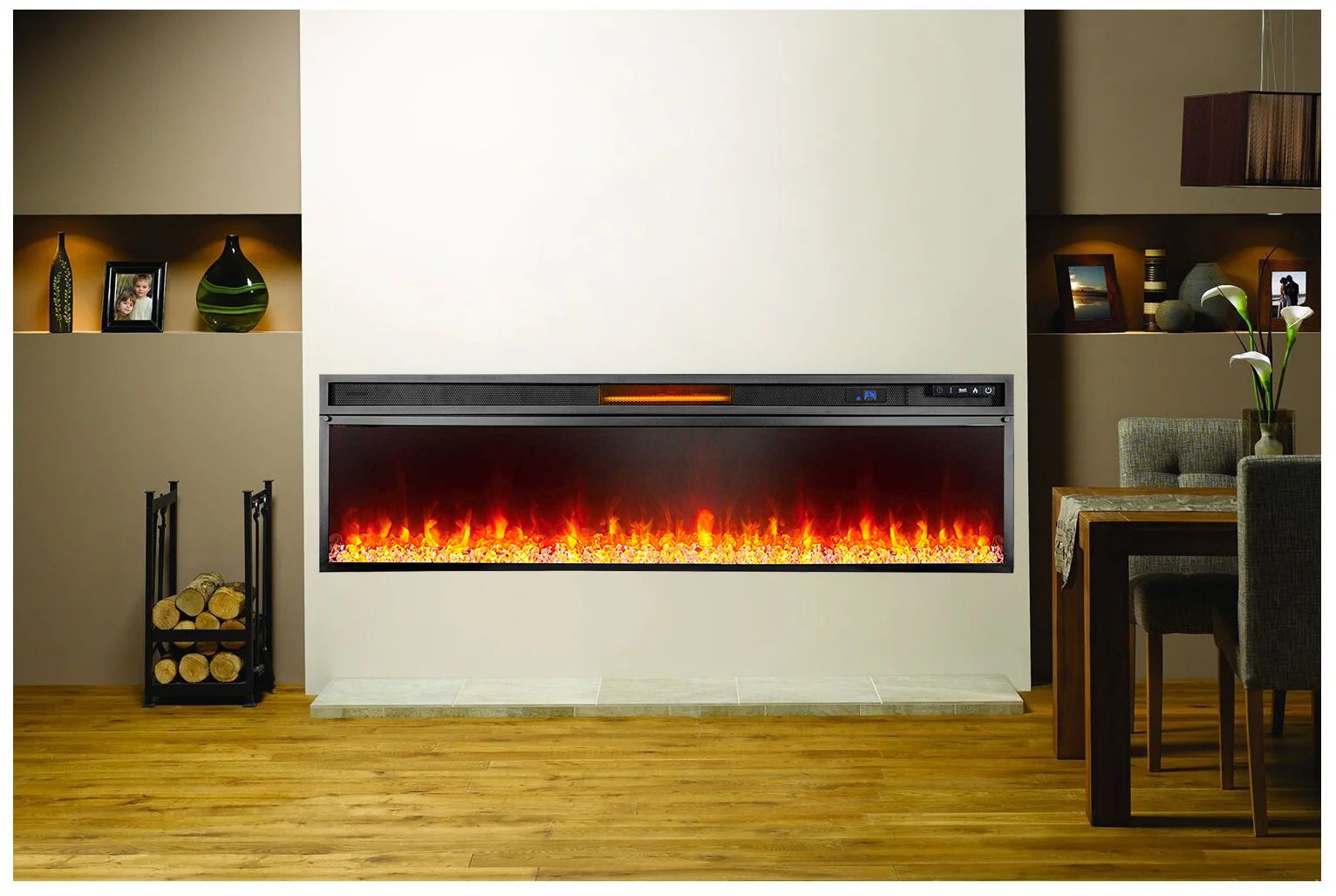 - Возможность встраивания в стену, каминный портал