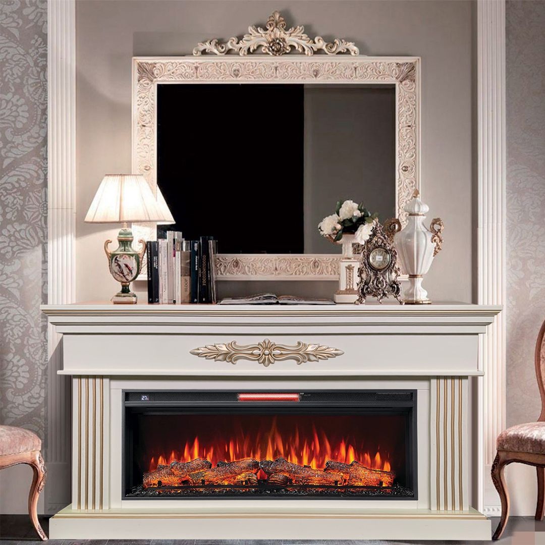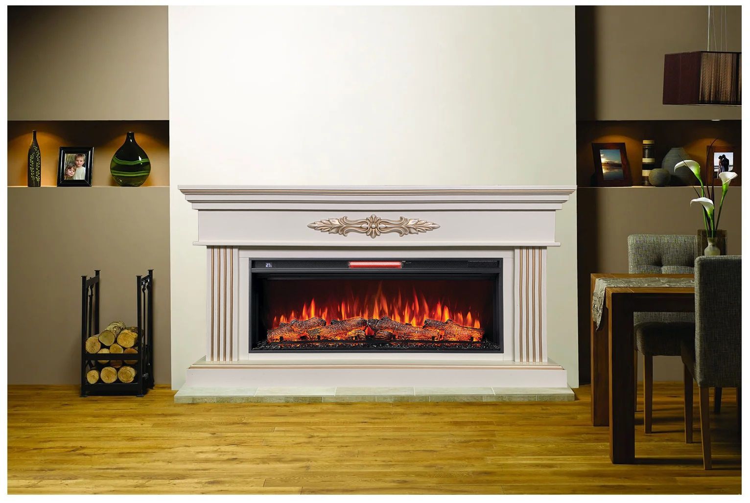 Портал укомплектован широкоформатным линейным электроочагом Joker 45. В очаге визуальный эффект горящего огня создается с помощью проекционной LED-технологии, имитация пламени, дрова. Присутствует звуковой эффект потрескивания дров. Очаг может работать как в режиме обогрева, так и в декоративном режиме без обогрева. В режиме обогрева в очаге предусмотрена поградусная регулировка обогрева от 17° до 27°, поэтому в холодные дни данный электрокамин можно использовать как дополнительный источник тепла.