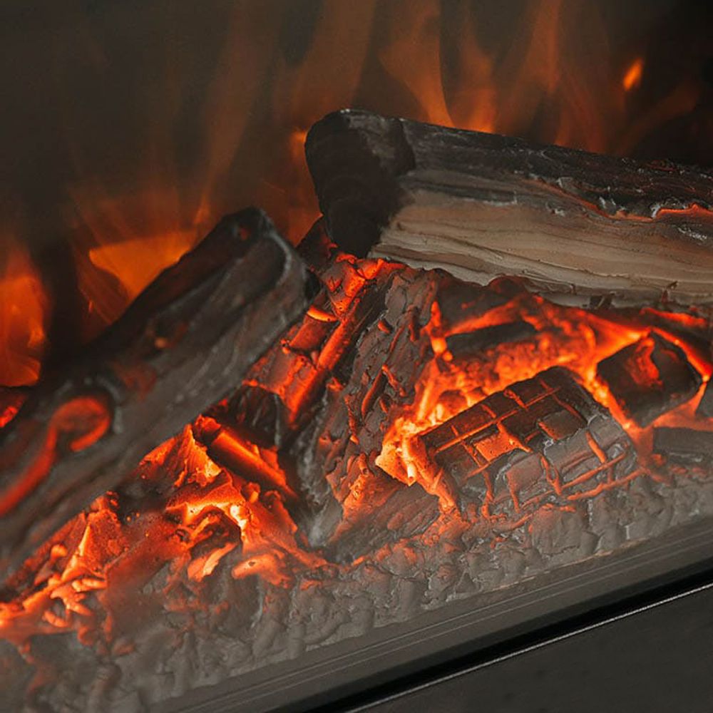 Имитация огня в очаге создается с помощью специальной подсветки, а ее эффект усиливается благодаря «тлеющим» поленьям и подсветке боковых стенок. Это добавляет ему элегантности и утонченности. Такой декоративный элемент сделает любое помещение более современным и стильным. Реалистичный муляж дров и звуковая имитация потрескивания дров создают иллюзию натурального дровяного камина. Яркость пламени можно регулировать – доступно 4 возможных варианта.