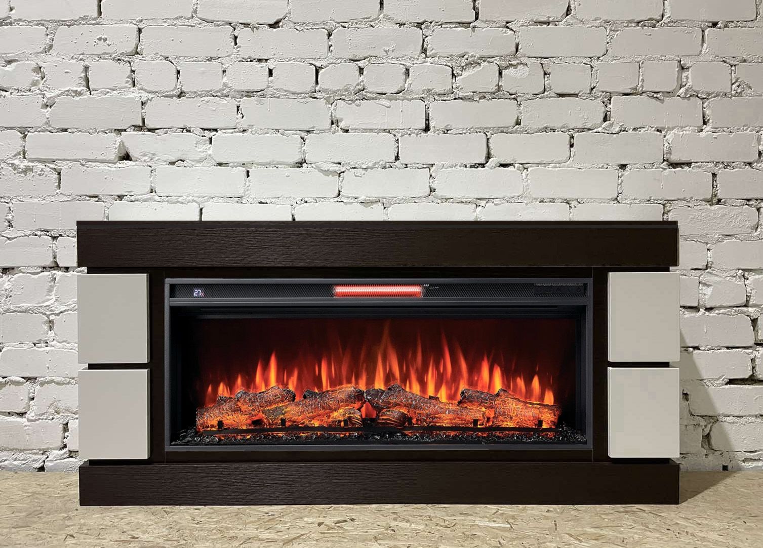 Портал укомплектован широкоформатным линейным электроочагом Joker 45. В очаге визуальный эффект горящего огня создается с помощью проекционной LED-технологии, имитация пламени, дрова. Присутствует звуковой эффект потрескивания дров. Очаг может работать как в режиме обогрева, так и в декоративном режиме без обогрева. В режиме обогрева в очаге предусмотрена поградусная регулировка обогрева от 17° до 27°, поэтому в холодные дни данный электрокамин можно использовать как дополнительный источник тепла.
