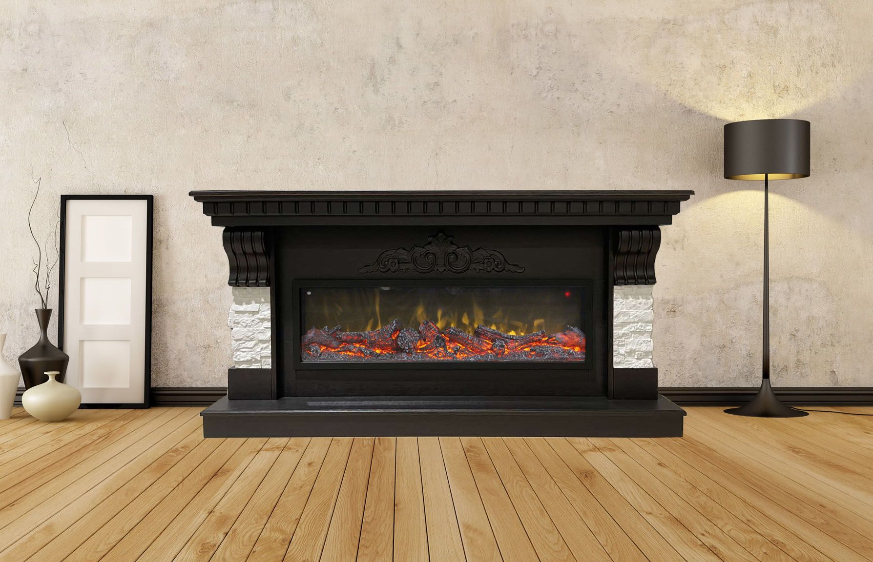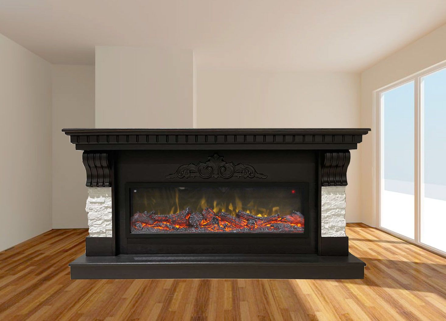 Укомплектован линейным электроочагом Beverly 1000, который превосходно подходит для создания атмосферы тепла и уюта в вашем доме. Подберите наиболее комфортный режим яркости пламени, включите звуковой эффект потрескивания дров и погрузитесь в магию огня. В очаге визуальный эффект горящего огня создается с помощью проекционной LED-технологии, имитация пламени, дрова. Присутствует звуковой эффект потрескивания дров. В электрокамине предусмотрена функция регулировки яркости пламени. Комплектуется пультом дистанционного управления.