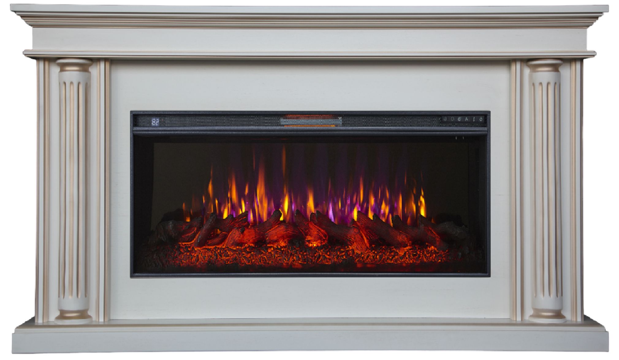 - Управление: пульт ДУ или кнопки на фронтальной панели очага
