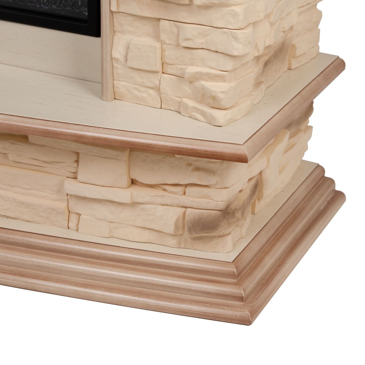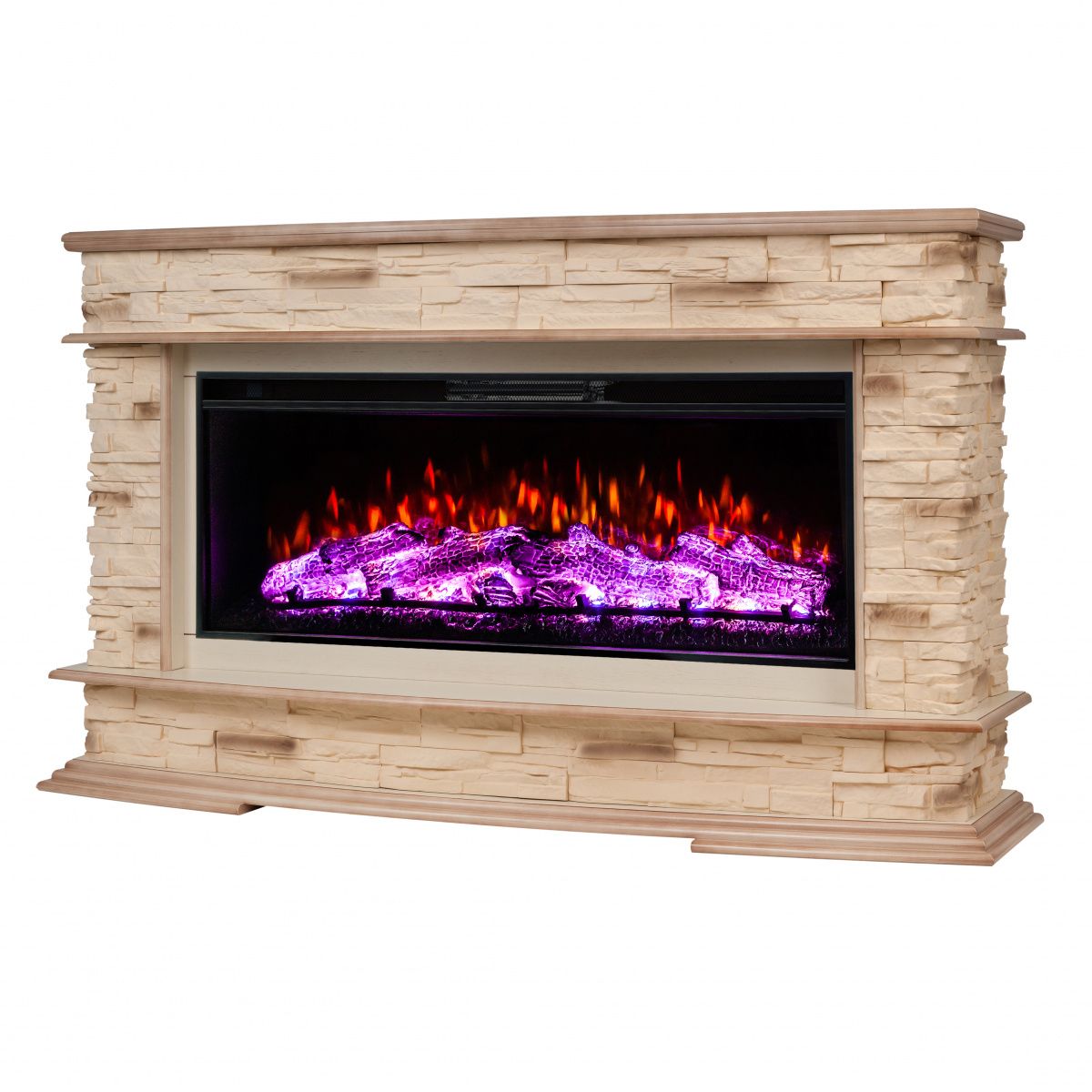Портал укомплектован широкоформатным линейным электроочагом Joker 45. В очаге визуальный эффект горящего огня создается с помощью проекционной LED-технологии, имитация пламени, дрова. Присутствует звуковой эффект потрескивания дров. Очаг может работать как в режиме обогрева, так и в декоративном режиме без обогрева. В режиме обогрева в очаге предусмотрена поградусная регулировка обогрева от 17° до 27°, поэтому в холодные дни данный электрокамин можно использовать как дополнительный источник тепла.