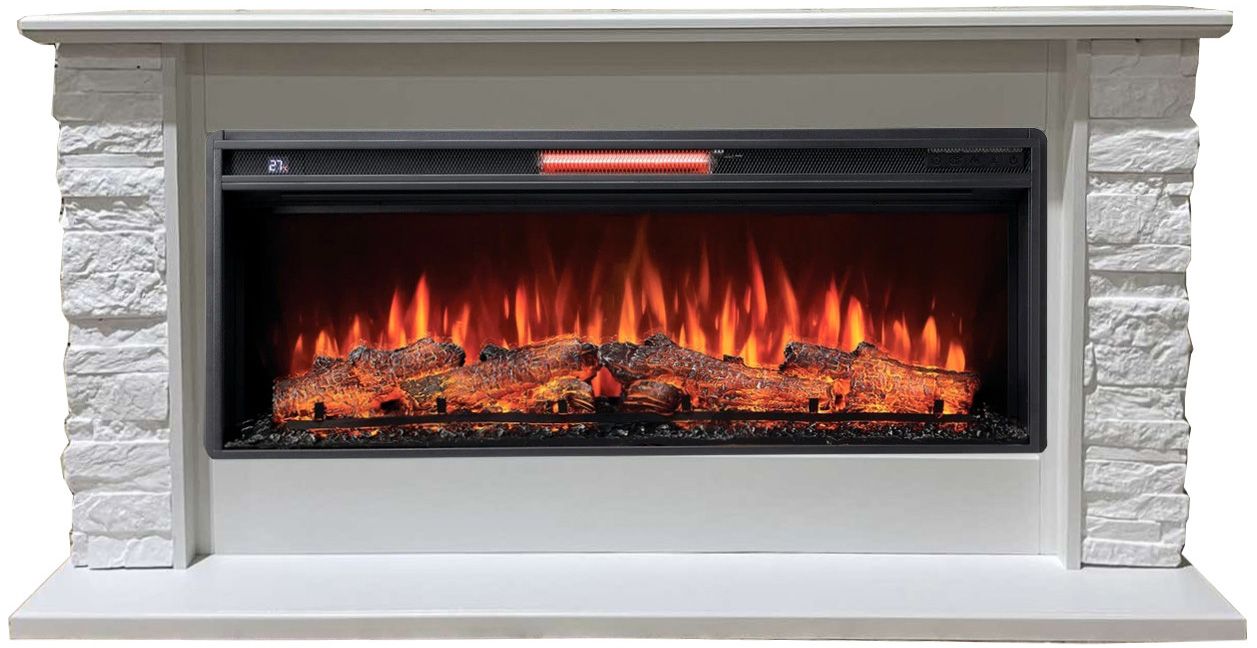 Портал укомплектован широкоформатным линейным электроочагом Joker 45. В очаге визуальный эффект горящего огня создается с помощью проекционной LED-технологии, имитация пламени, дрова. Присутствует звуковой эффект потрескивания дров. Очаг может работать как в режиме обогрева, так и в декоративном режиме без обогрева. В режиме обогрева в очаге предусмотрена поградусная регулировка обогрева от 17° до 27°, поэтому в холодные дни данный электрокамин можно использовать как дополнительный источник тепла.
