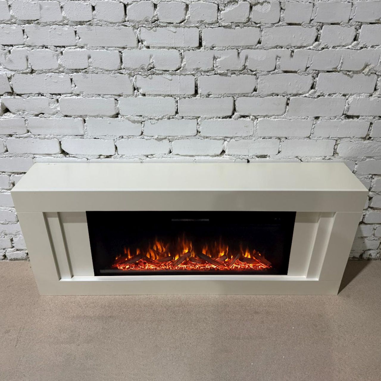 Линейный электрокамин Лайн SL с очагом Vision 42 LOG LED – это современный широкоформатный электрический камин. Его размер составляет: 654х1498х255 мм. Изготовлен из высококачественного МДФ и экошпона в цвете слоновая кость.
