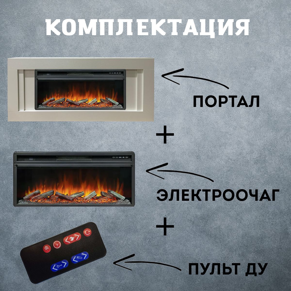 - Управление: пульт ДУ или кнопки на фронтальной панели очага
