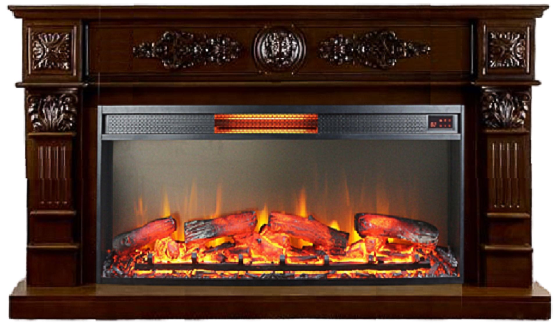 Комплектуется пультом дистанционного управления с помощью которого можно настроить 3 варианта яркости пламени и дров. Возможно переключение мощности обогрева до 1800 Вт, поэтому в холодные дни электрический очаг можно использовать как дополнительный источник тепла, а новейший кварцевый обогреватель с функцией климат контроль не сжигает кислород в помещении, обеспечивая наиболее комфортную температуру.