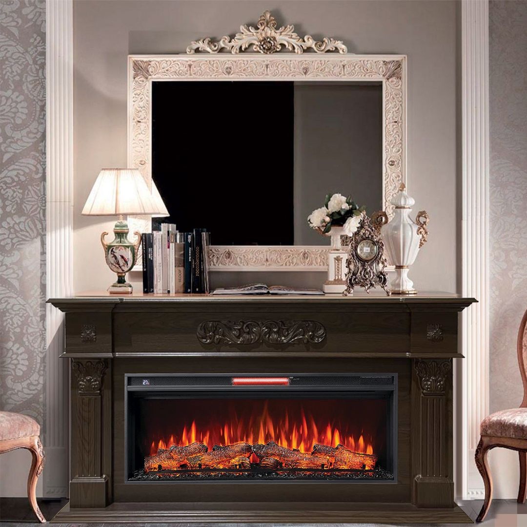 В электрокамине предусмотрены функции регулировки яркости и скорости пламени, разноцветное пламя (5 вариантов цвета), 5 вариантов цвета подсветки дров, авторежим смены цвета дров. Присутствует функция защиты от перегрева, таймер отключения, термостат. Электрокамин комплектуется пультом дистанционного управления.