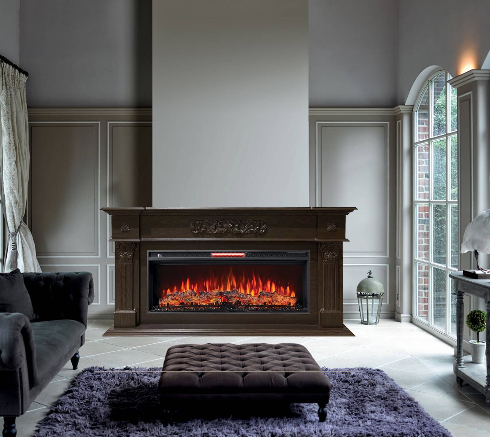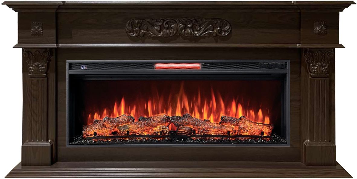 Портал укомплектован широкоформатным линейным электроочагом Joker 45. В очаге визуальный эффект горящего огня создается с помощью проекционной LED-технологии, имитация пламени, дрова. Присутствует звуковой эффект потрескивания дров. Очаг может работать как в режиме обогрева, так и в декоративном режиме без обогрева. В режиме обогрева в очаге предусмотрена поградусная регулировка обогрева от 17° до 27°, поэтому в холодные дни данный электрокамин можно использовать как дополнительный источник тепла.