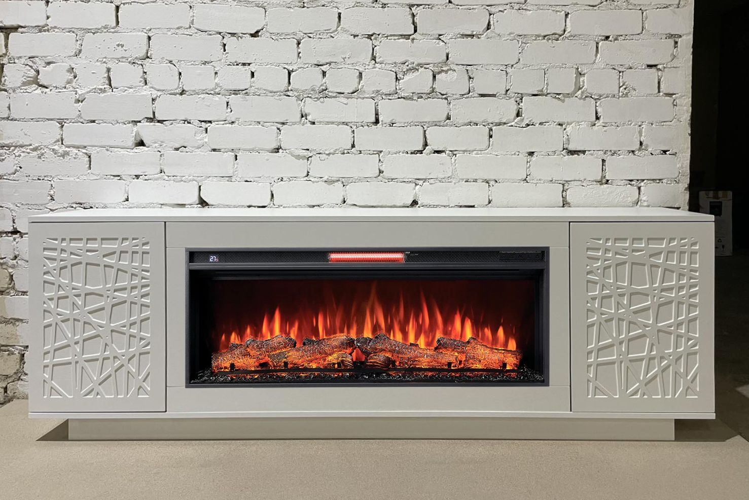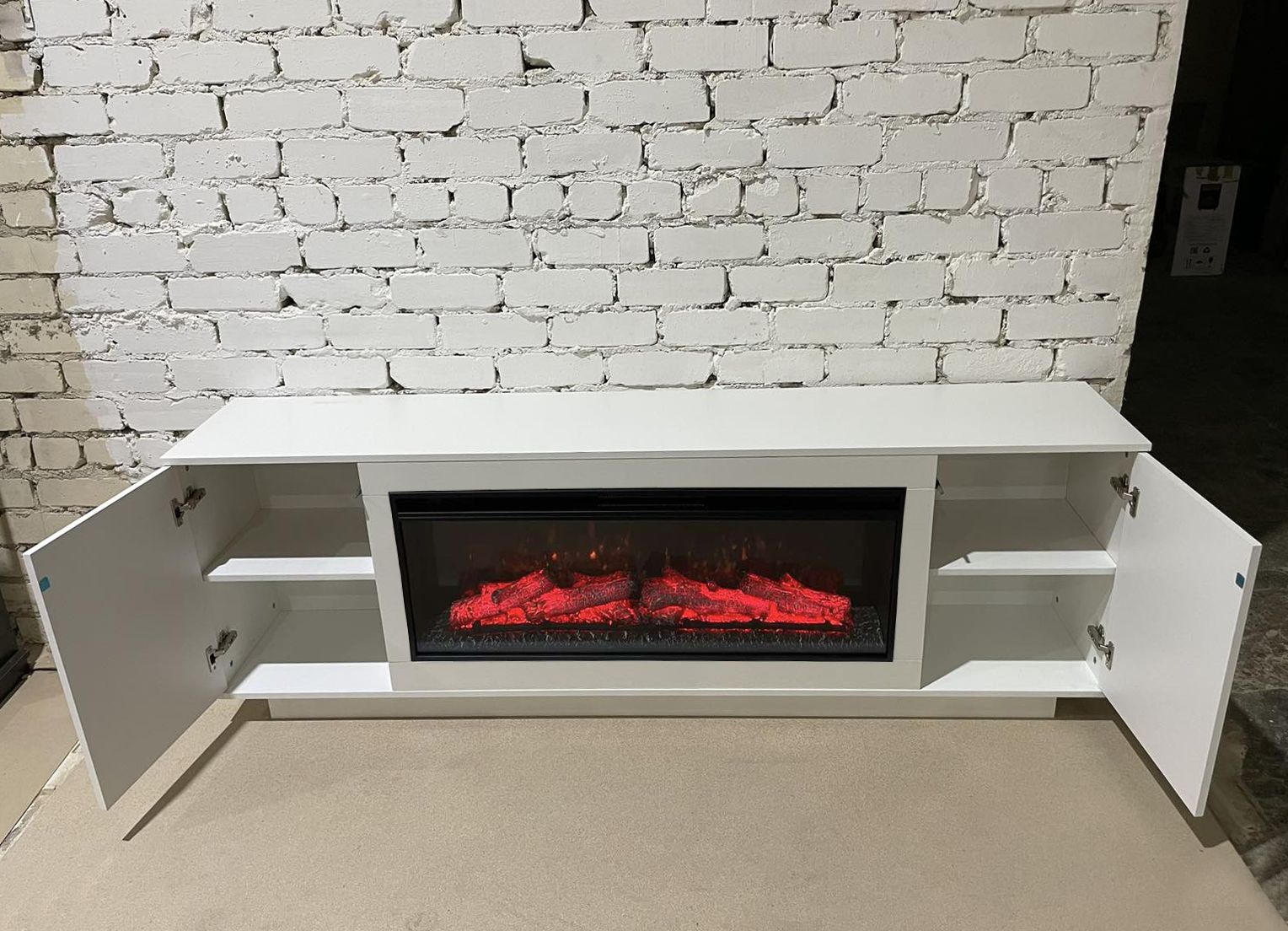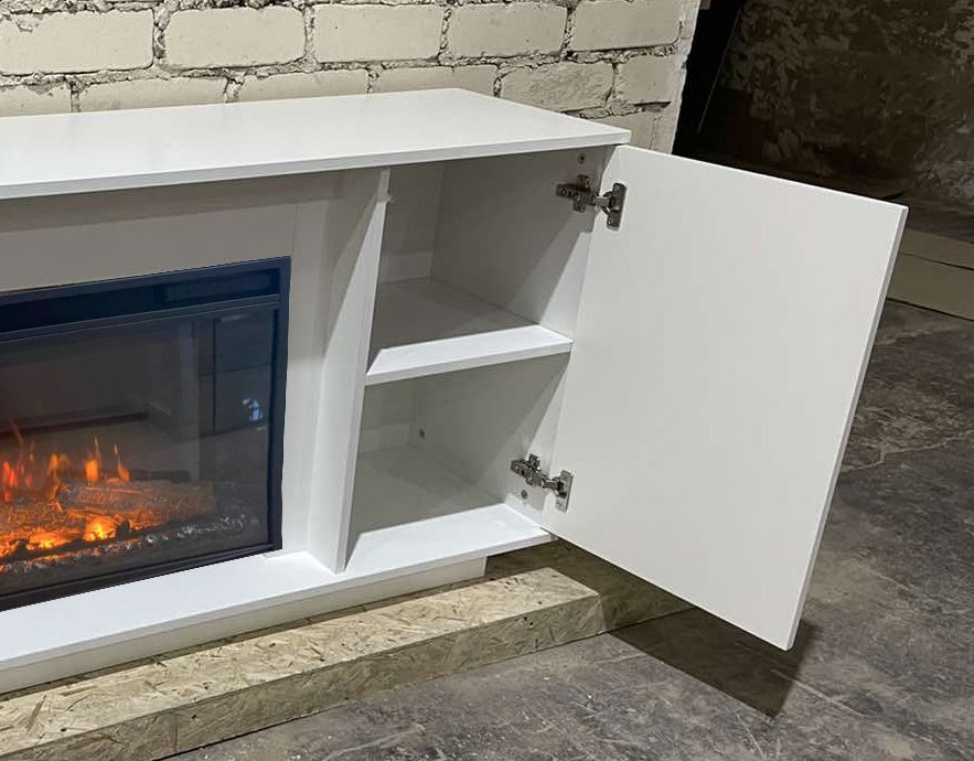 Электрический камин Майами может быть использован как тумба под телевизор или для размещения саундбара. В боковых секциях мы спрятали функциональные полки для самых важных вещей, скрытая система открывания «Push-to-open» обеспечит быстрой доступ с помощью одного касания.