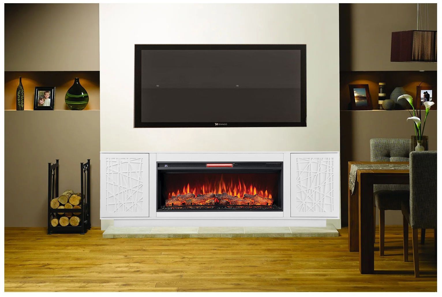 - Имитация пламени, дрова