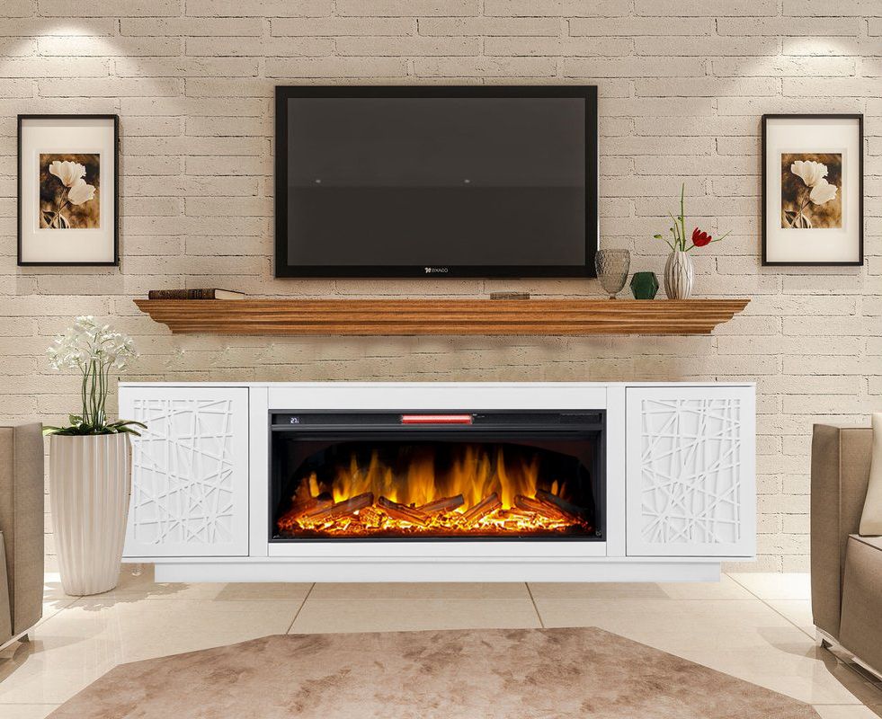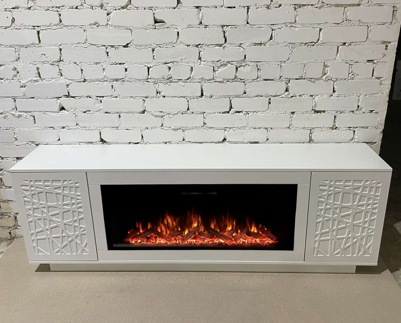 Линейный электрокамин Майами WT с очагом Vision 42 LOG LED - большой, просторный электрокамин с красивыми резными фасадами. В нем сочетается функциональность и простота. Изготовлен из МДФ и экошпона в белом цвете.