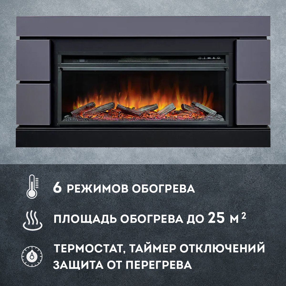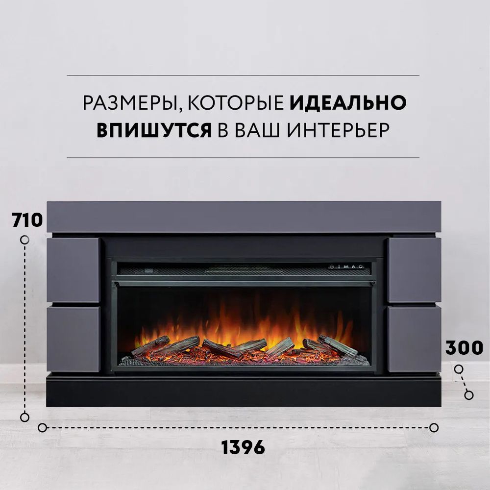 Линейный электрокамин Modern SFT-GR с очагом Vision 42 LOG LED - стильный электрокамин, изготовленный в стиле хай-тек со строгими линиями корпуса из высококачественного ЛДСП премиум-класса в цвете серый графит. Благородный цвет конструкции гармонично оттеняет яркое пламя камина, создавая лаконичную и современную обстановку в вашем доме.