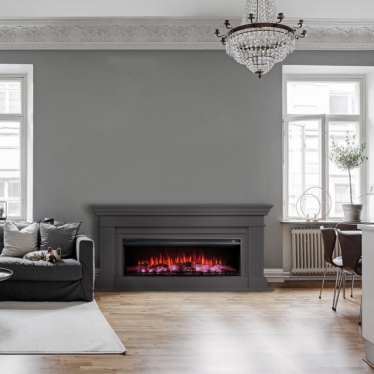 Линейный электрокамин Ontario GR с очагом Joker 52 изготовлен из высококачественного МДФ, покрытого эмалью. Выполнен в современном минималистическом стиле, поэтому он идеально подойдёт под обстановку хай-тек, в которой будет привлекать внимание своими прямыми линиями и лаконичными формами. Подходит для современных интерьеров различных стилей.
