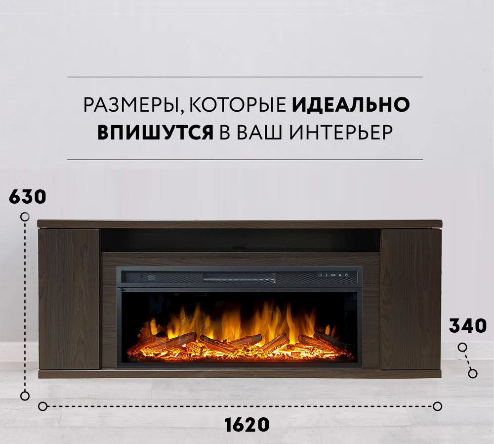 Реалистичный муляж дров и звуковая имитация потрескивания дров создают иллюзию натурального дровяного камина. Яркость пламени можно регулировать – доступно 4 возможных варианта.