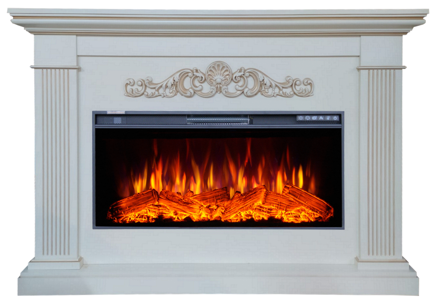 - Управление: пульт ДУ или кнопки на фронтальной панели очага