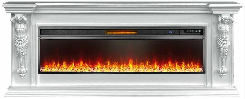 Линейный электрокамин Sparta BG с очагом Vision 60 LED - деревянный широкоформатный электрокамин в античном стиле. Боковые колонны декорированы объемными фигурами атлантов, поддерживающими выступающую вперед каминную полку. Данный электрокамин больше походит для установки в просторных помещениях. Гармонично впишется практически в любой классический интерьер.