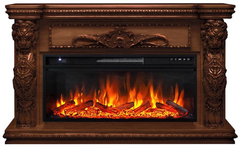 Линейный электрокамин Windsor темный дуб с очагом Vision 42 LED - средневековый стиль исполнения с большими колоннами, которые украшены головой льва с имитацией герба. Это творение мастеров поистине сделает любое помещение одной из комнат замка или дворца. Прекрасно впишется в классический интерьер.
